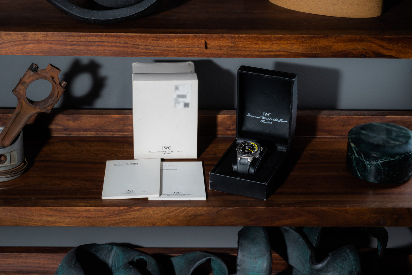 Powered by the IWC Calibre 30110 automatic winding movement (ETA 2892-A2 base), this piece comes paired to a signed black rubber dive strap with an IWC-signed pin buckle and it's factory goodies.