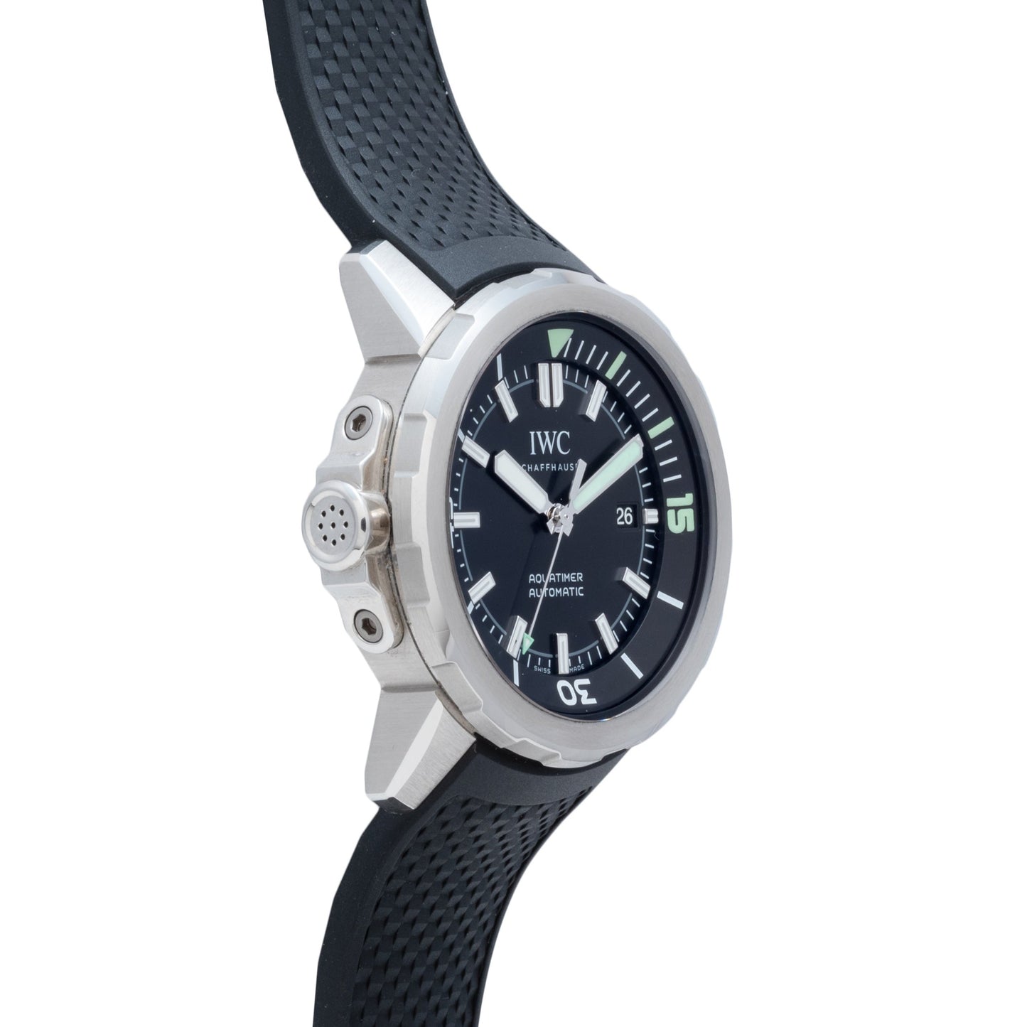 This particular Aquatimer, a Reference IW329001, dates back to 2022 and features a 42mm stainless steel case, a sapphire crystal, a signed screw-down crown, and a rotating inner and outer bezel equipped with the manufacture’s SafeDive Device.