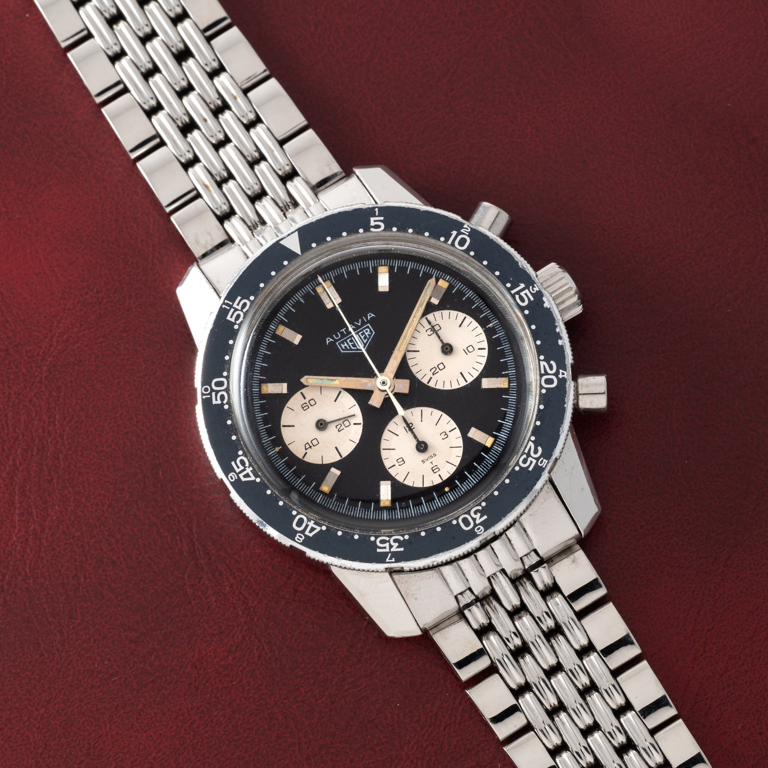The earliest Autavias wrist chronographs were introduced in the mid-1960s and housed manually-wound chronograph movements. These early models had screw-down case backs, unusual for racing chronographs of the period. These were followed up by snap-back compressor cases for improved water resistance. In 1969, Heuer shifted to the larger, cushion-style cases that are most often associated with the model, primarily to accommodate the new Calibre 11 automatic movements.