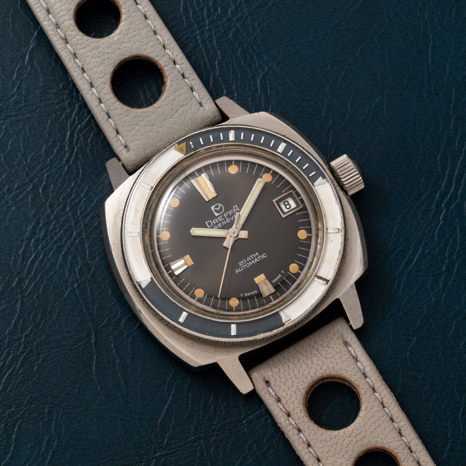 Powered by an Swiss-made automatic ETA 2772 movement and paired to a Ralstra strap, this cool 1970s diver is an affordable entry point into the world of vintage watch collecting. Whether you're looking for a cool everyday option for yourself or a fun and funky gift for a horologically-inclined friend, you can't go wrong with this this Dreffa!