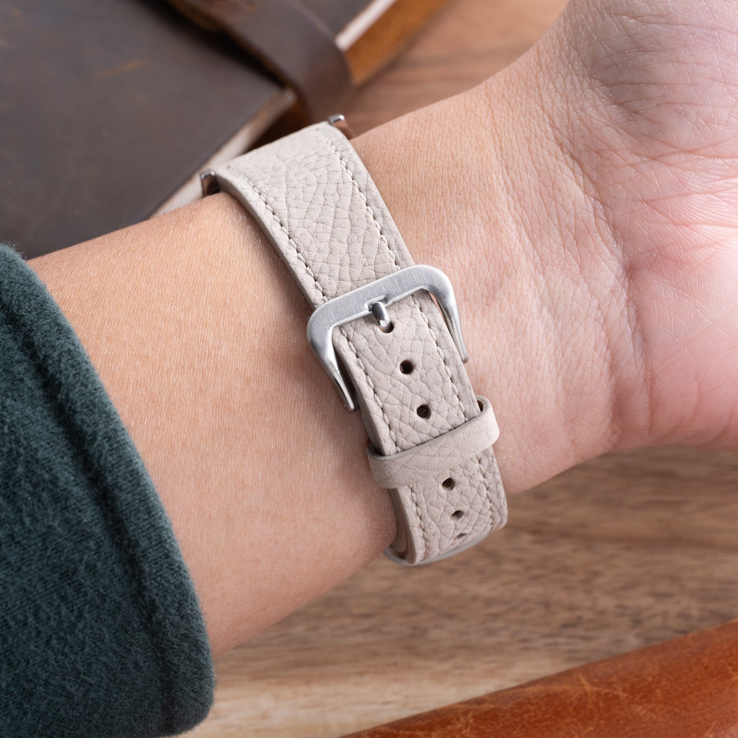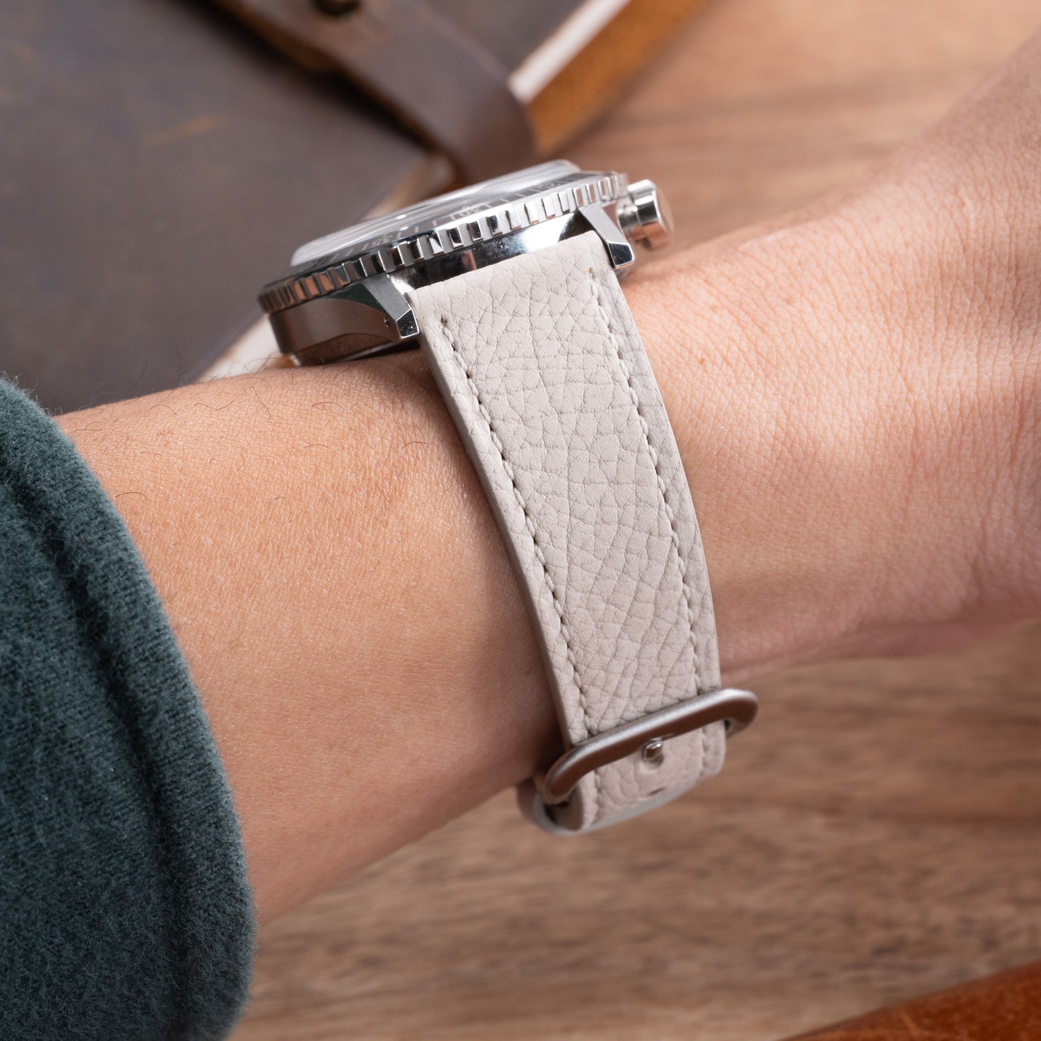 The Rover White Matte Calf Strap takes its name from one of Great Britain's finest exports - their legendary 4X4s. A staple colorway of 1970s-1990s models, this strap signals the same rugged-yet-luxurious messaging as its automotive inspiration. Pair it up with something sporty for a unexpected brightening, or take the glossy shine off something fancier that (probably) shipped with a contemporary luxury watch by swapping on this subtle - and surprisingly versatile - beauty that would look right at home on T.E. Lawrence's wrist!