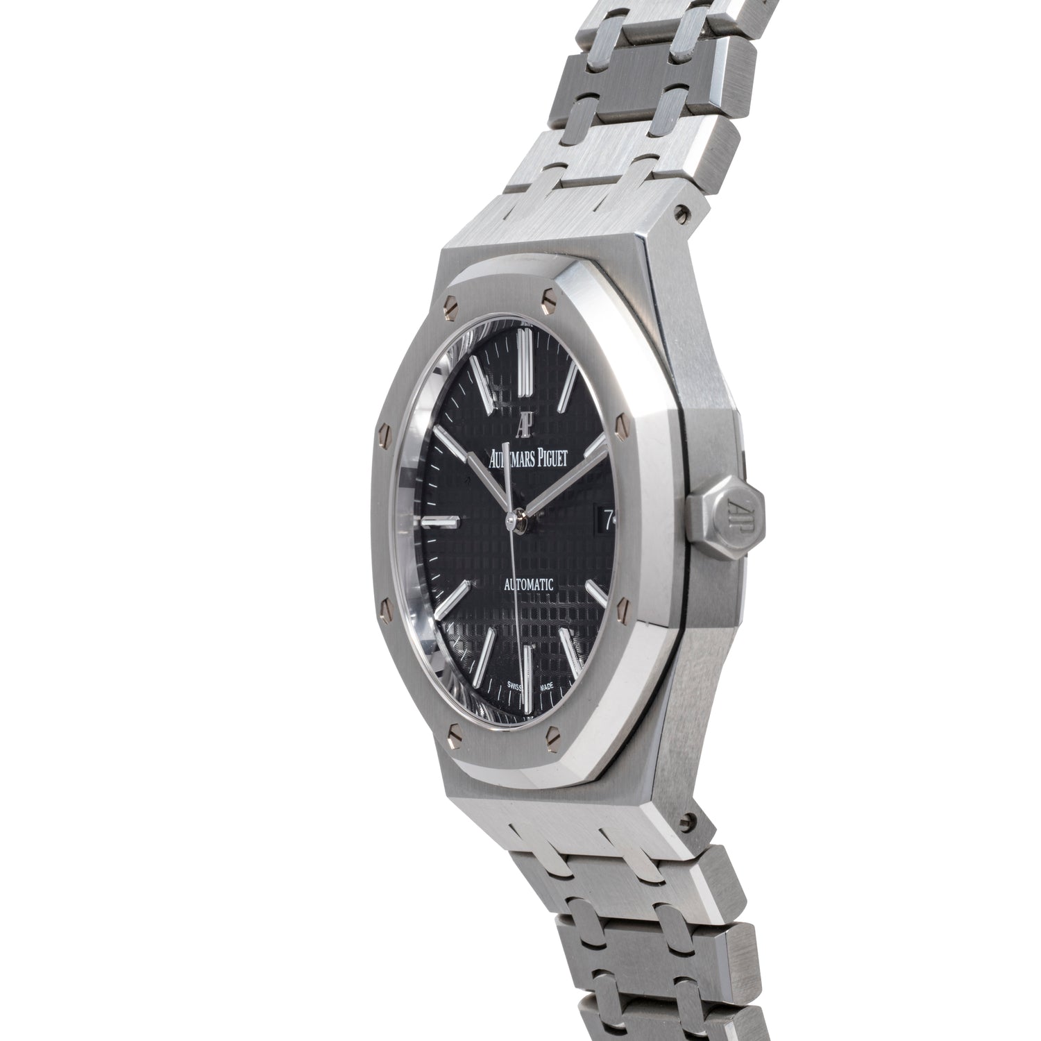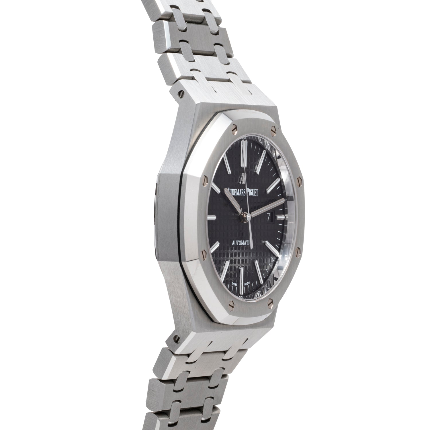 This Royal Oak, a modern Reference 15400ST from circa the 2010s, is housed in a 41mm stainless steel case and features a sapphire crystal, a signed crown, a sapphire exhibition caseback, and a crisp and flawless luminous blue grand tappiserie dial with a matching handset and a date at 3 o'clock. Powered by the Audemars Piguet Calibre 3120 automatic movement, it comes paired to the fantastic integrated R.O. stainless steel bracelet with a signed, hidden deployant clasp. What's more? It comes with its factory goodies, including its signed guarantee from 2017.