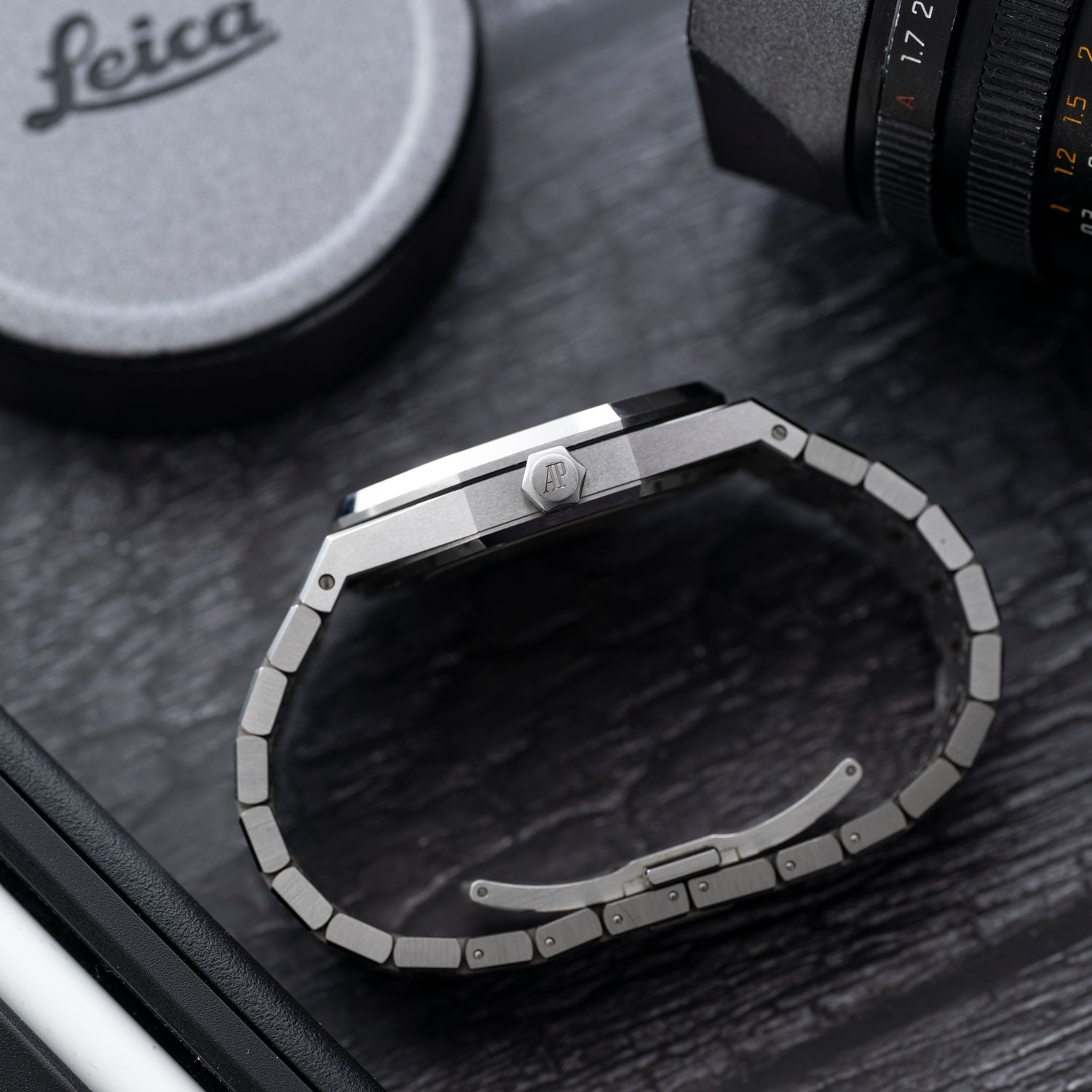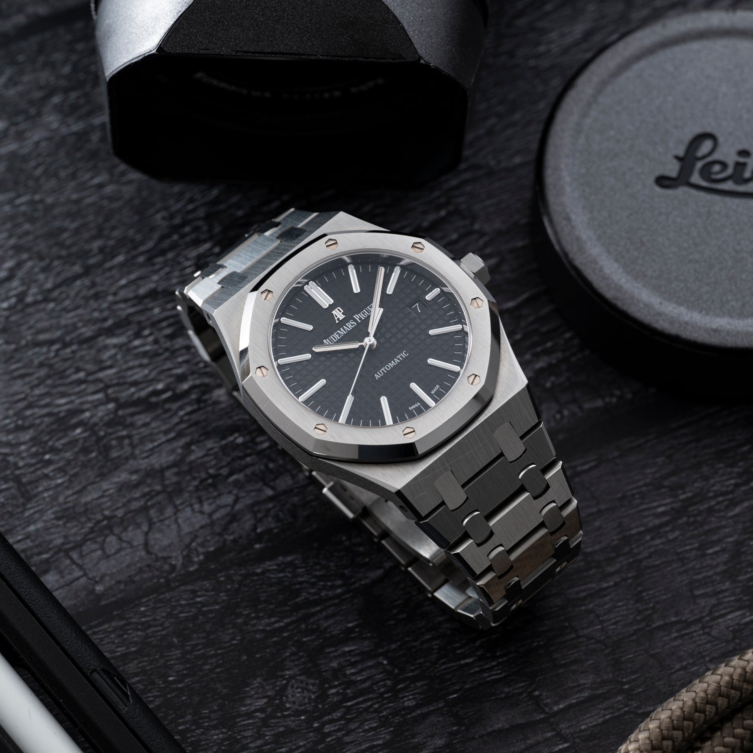 The Royal Oak essentially created an entirely new category of 'luxury sport' timepieces, and with it came a new design language which inspired countless other manufactures. What's particularly delightful about the design of the Royal Oak is that it works brilliantly in a number of sizes and casing materials, from steel to carbon fiber or solid gold.