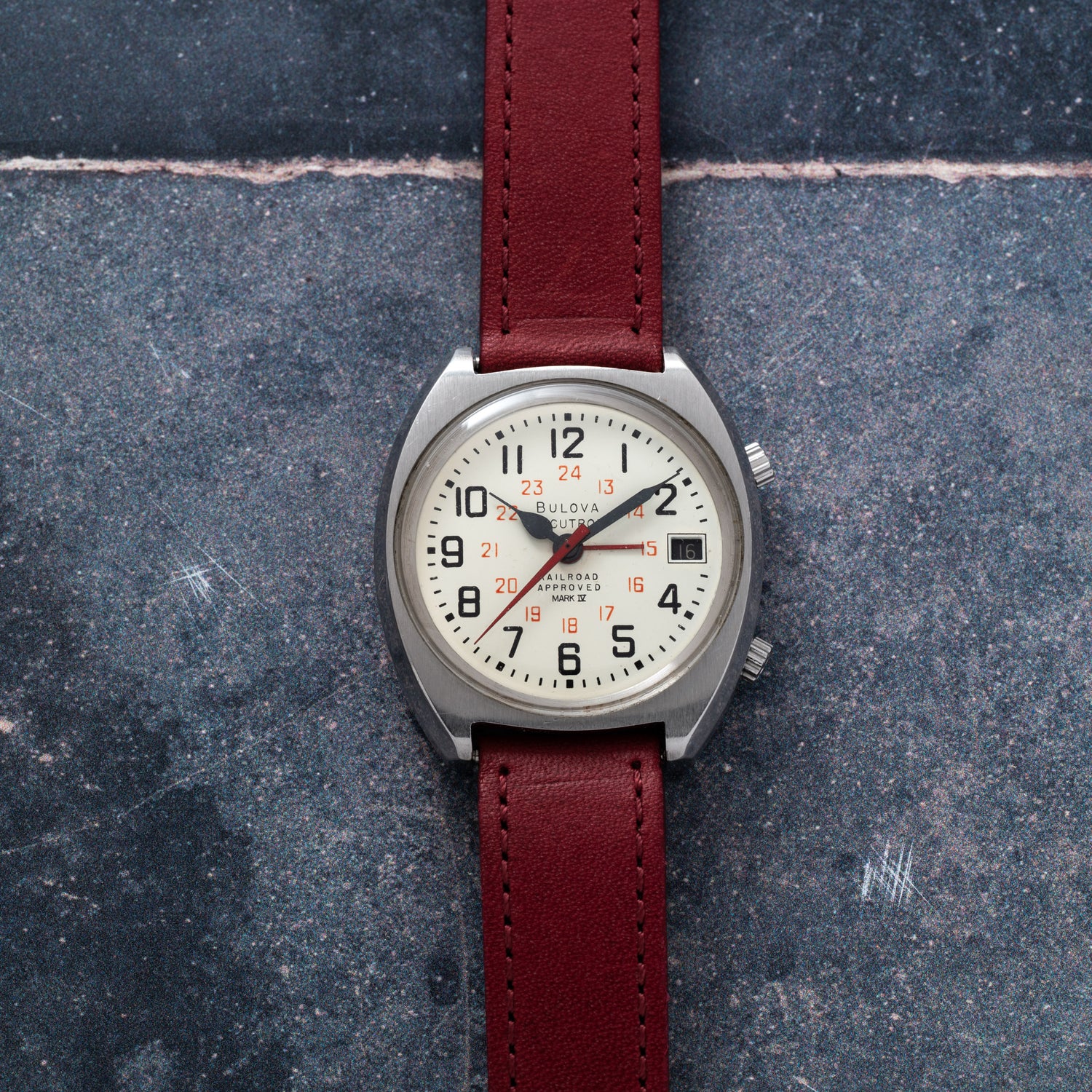 About a decade before the infamous Quartz Crisis, Bulova put into production a timepiece that did away with the traditional balance wheel, favoring instead a steel tuning fork powered by electromagnets attached to a battery-powered transistor oscillator circuit. Designed by Max Hetzel, the Accutron made waves, becoming the first wristwatch precise enough to be qualified for U.S. Railroad certification, and guaranteed to be accurate to roughly one minute per month, or about 2 seconds per day.