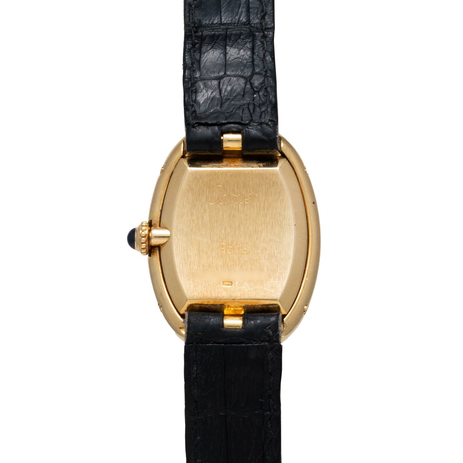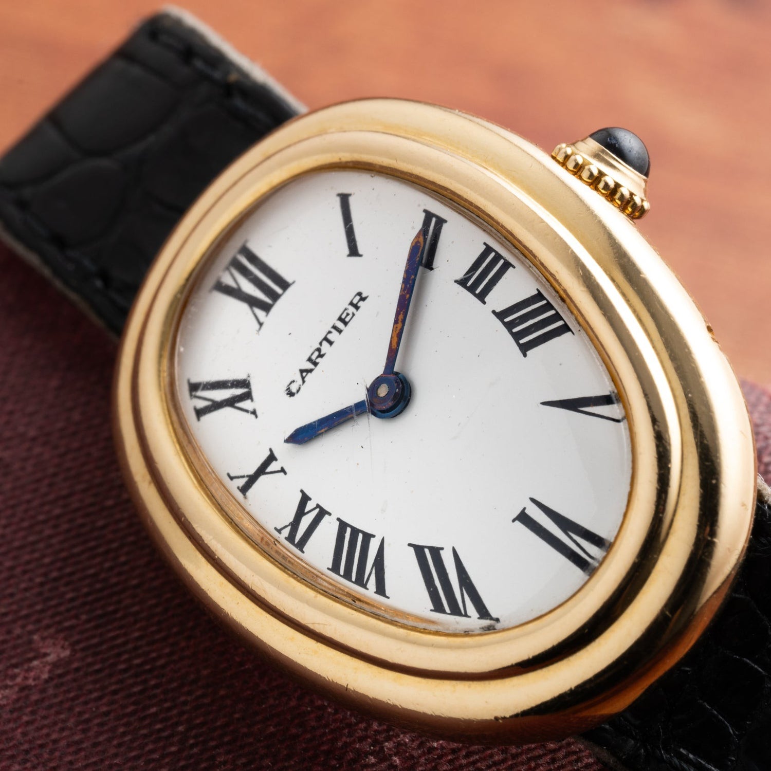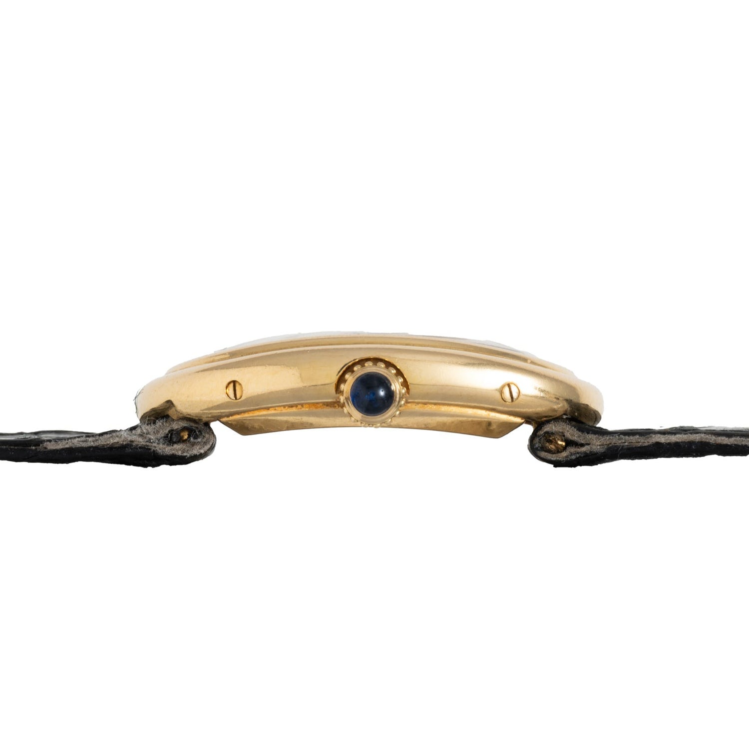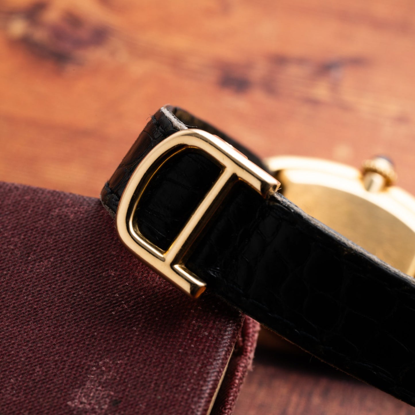 In spite of the unique design, this piece still preserves many of the details of classic Cartier we would hope to see: a Roman numeral dial, blued steel hands, petite Cartier logo, and more all serve as a reminder that this piece is backed by a name with an unrivaled history for fine jewelry making, and yes, watchmaking too. Powered by a manually-wound movement, this piece is in excellent condition and awaits its next custodian’s wrist.