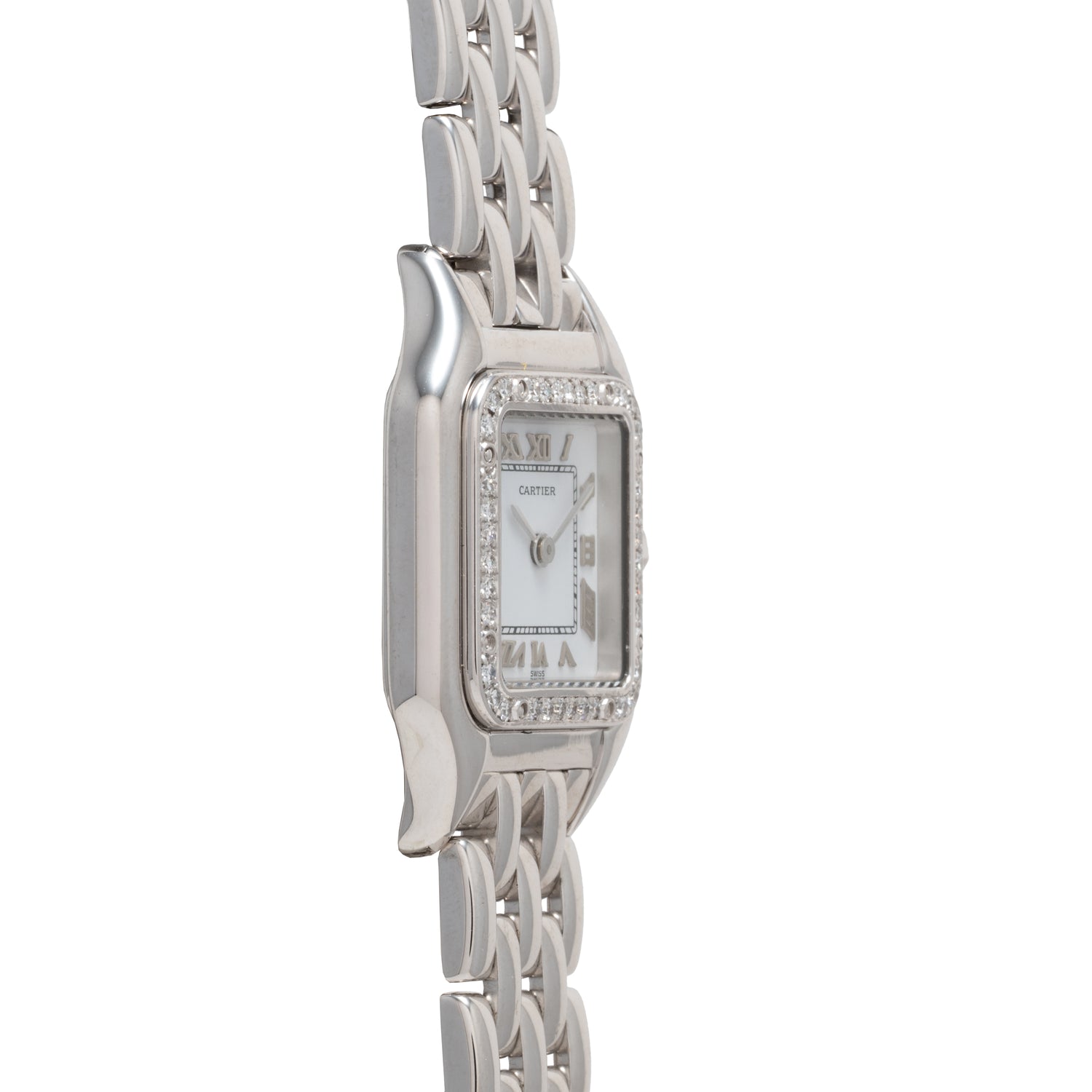 Powered by a quartz movement and paired to a matching, white gold multi-link bracelet, this svelte wristwatch is the very essence of Cartier: beautiful, elegant, and lasting.