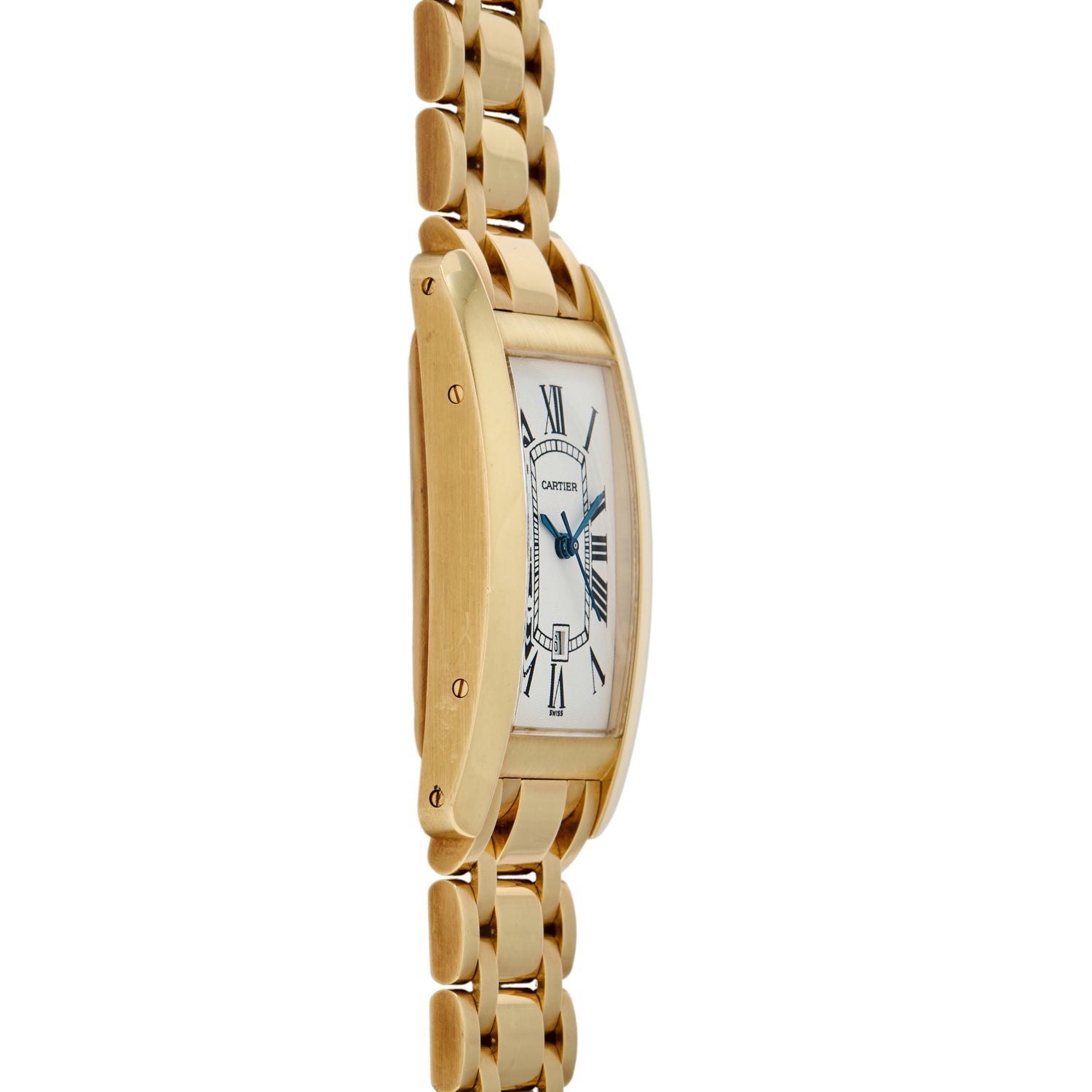 In 1989, Cartier released a particularly exciting reference, targeted at the American collector market. Cartier recognized that New York customers loved more fashion-forward designs like the Cintrée. Making a specialty design for these customers, Cartier released the Tank Americaine. Featuring many of the characteristics of the Cintrée, the Americaine had an elongated scalloped case, lightly curved caseback, and beautiful case layout. The Americaine had the classic Roman numeral dial with railroad minutes track, blued steel hands, and cream dial that made the Tank so iconic and recognizable.