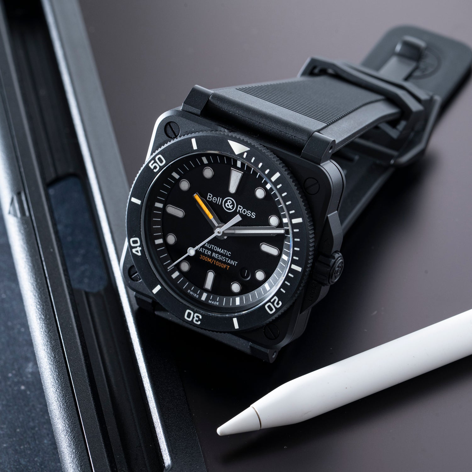 The brand’s instrument panel-inspired BR-01, with its square case, stark dial, and rubber strap, quickly made waves in the watch world, leading to an explosion in popularity for the fledgling Parisian brand. Since then, Bell & Ross has expanded into different case shapes and design profiles — but the square BR-01’s evolution, the BR-03, remains a mainstay in the catalog.