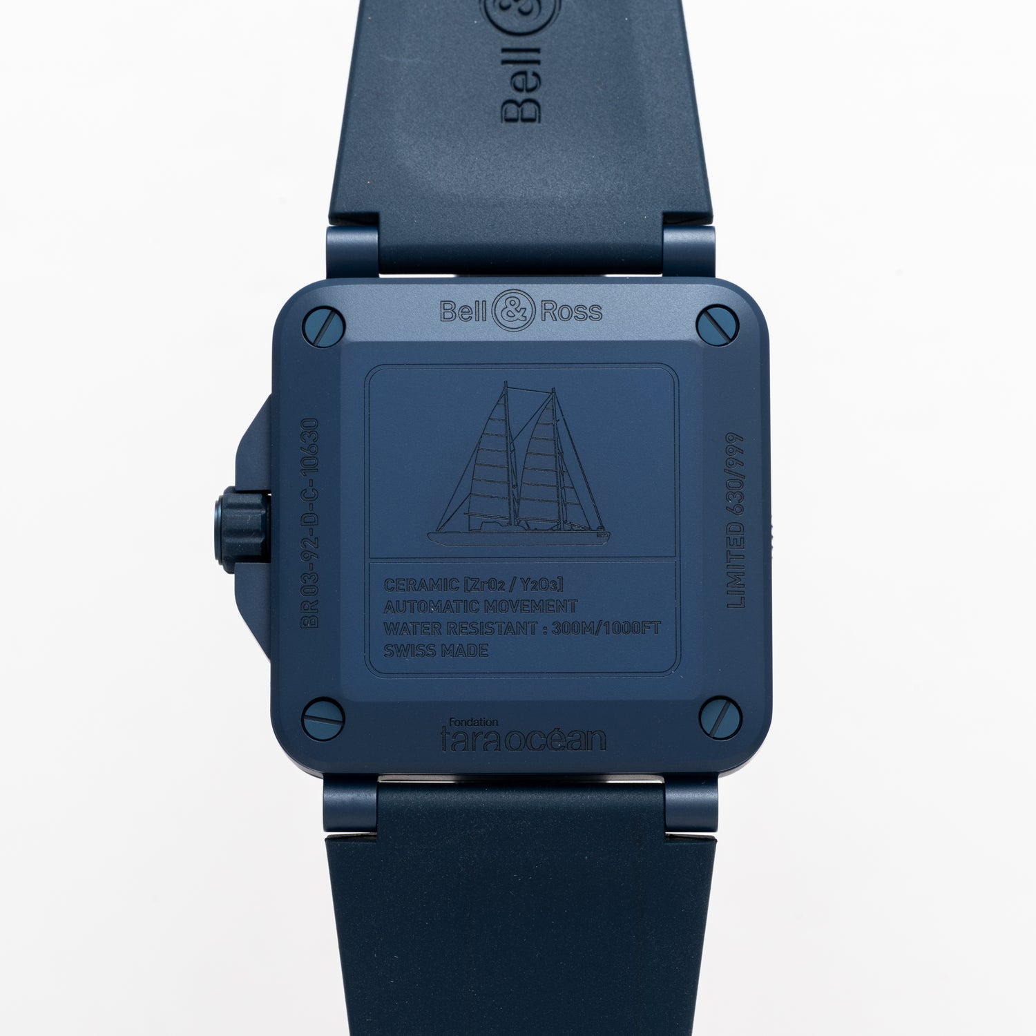 This piece is part of a limited edition of just 999 examples in this ceramic configuration to celebrate Bell and Ross's collaboration with Tara Ocean, a foundation dedicated to protecting the world's oceans.