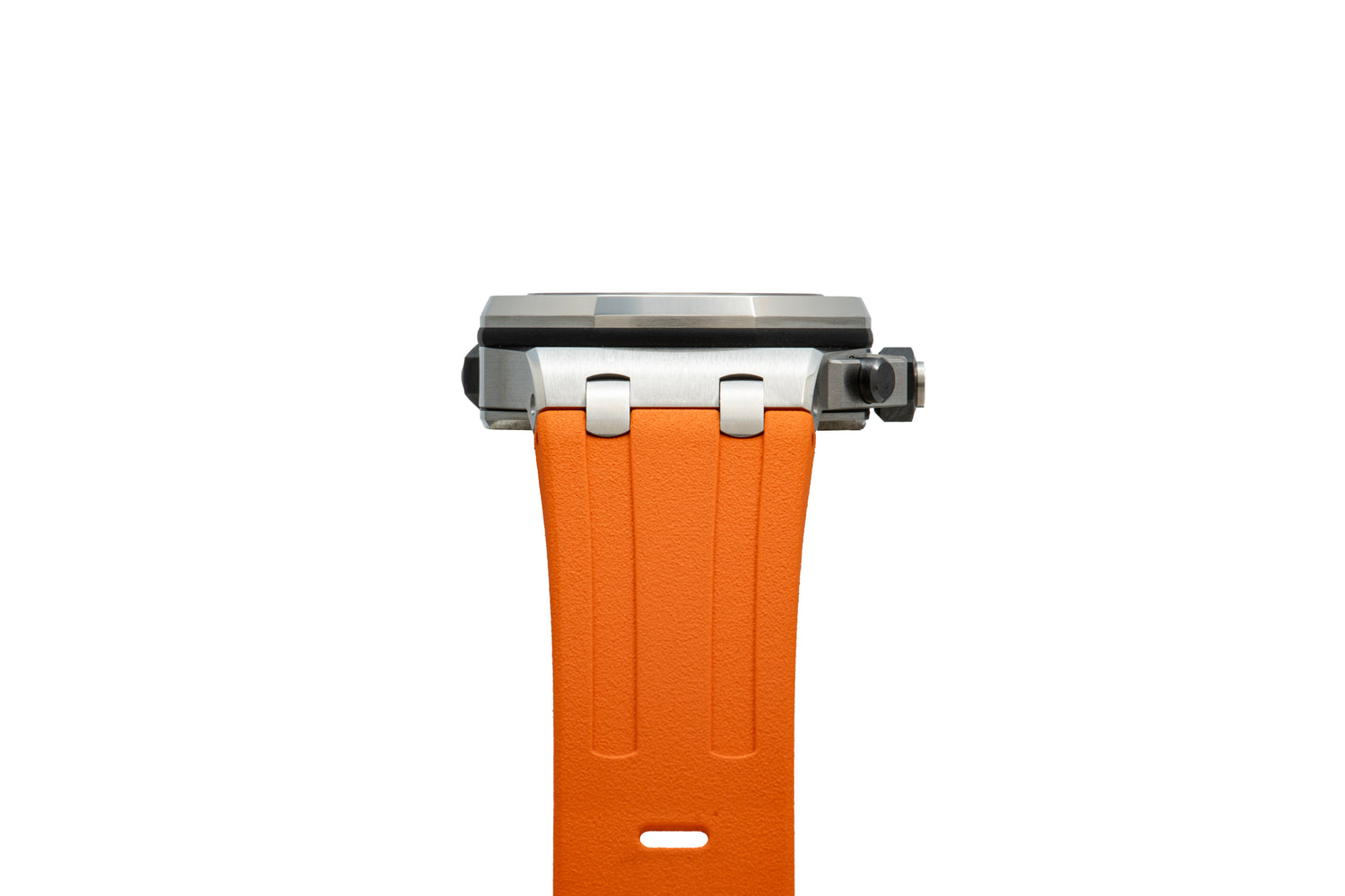 This particular model, a Reference 15710ST Offshore Diver, is AP's take on a 'no frills' dive watch. Compared to most References in the Offshore lineup, this watch keeps it relatively simple with the time, date, and an internal rotating dive timing bezel which is operated by the crown at the 10:00 position. It features a luminous orange macro-tapisserie dial with a matching handset, and an excellent integrated rubber strap manages to fit perfectly on the wrist despite its 42mm size.