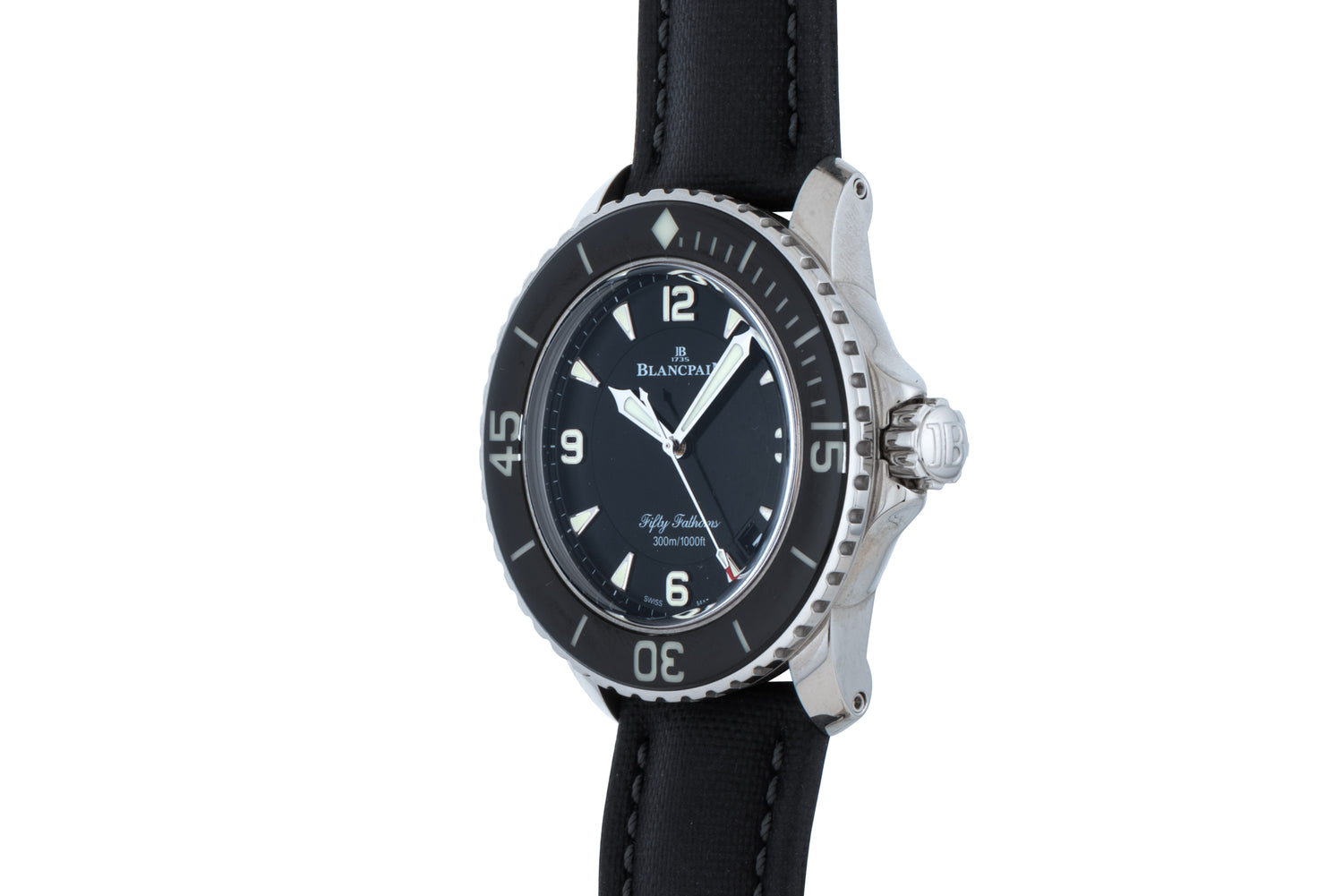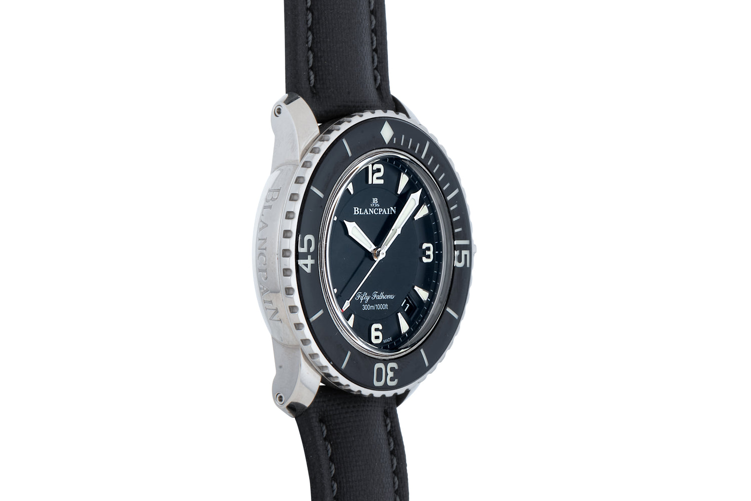 +But Blancpain's other genius — and what has arguably ensured their legacy — is the entrant into the world of purpose-built tool watches, and the industry's prototypical modern diver's watch: the legendary Fifty Fathoms. The genesis of this legendary timepiece has its roots in post-World War II France, where Captain Bob Maloubier (previously of the Special Operations Executive) and Lieutenant Claude Riffaud were tasked with setting up the French combat diver commando unit. The two approached Blancpain in the pursuit of a specialized diver’s watch — the design of which Maloubier drew up himself — and the Fifty Fathoms was born.a