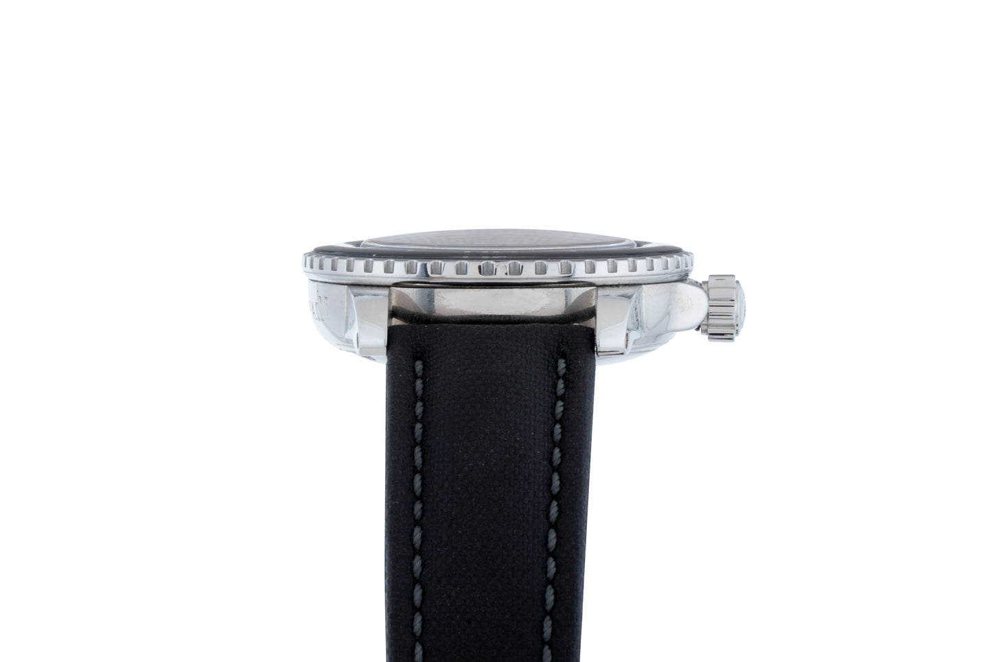 This piece comes fitted to a signed black rubber-lined canvas strap with a signed steel pin buckle and is powered by Blancpain's Calibre 1315 automatic winding movement with a whopping 120 hours of power reserve.