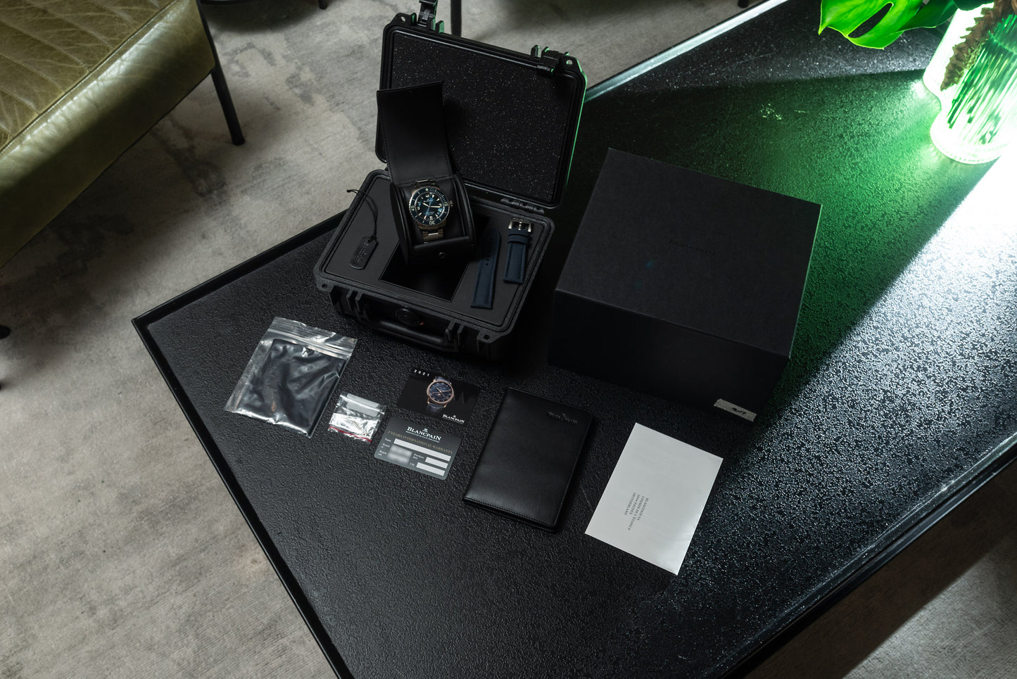+But Blancpain's other genius — and what has arguably ensured their legacy — is the entrant into the world of purpose-built tool watches, and the industry's prototypical modern diver's watch: the legendary Fifty Fathoms. The genesis of this legendary timepiece has its roots in post-World War II France, where Captain Bob Maloubier (previously of the Special Operations Executive) and Lieutenant Claude Riffaud were tasked with setting up the French combat diver commando unit. The two approached Blancpain in the pursuit of a specialized diver’s watch — the design of which Maloubier drew up himself — and the Fifty Fathoms was born.a