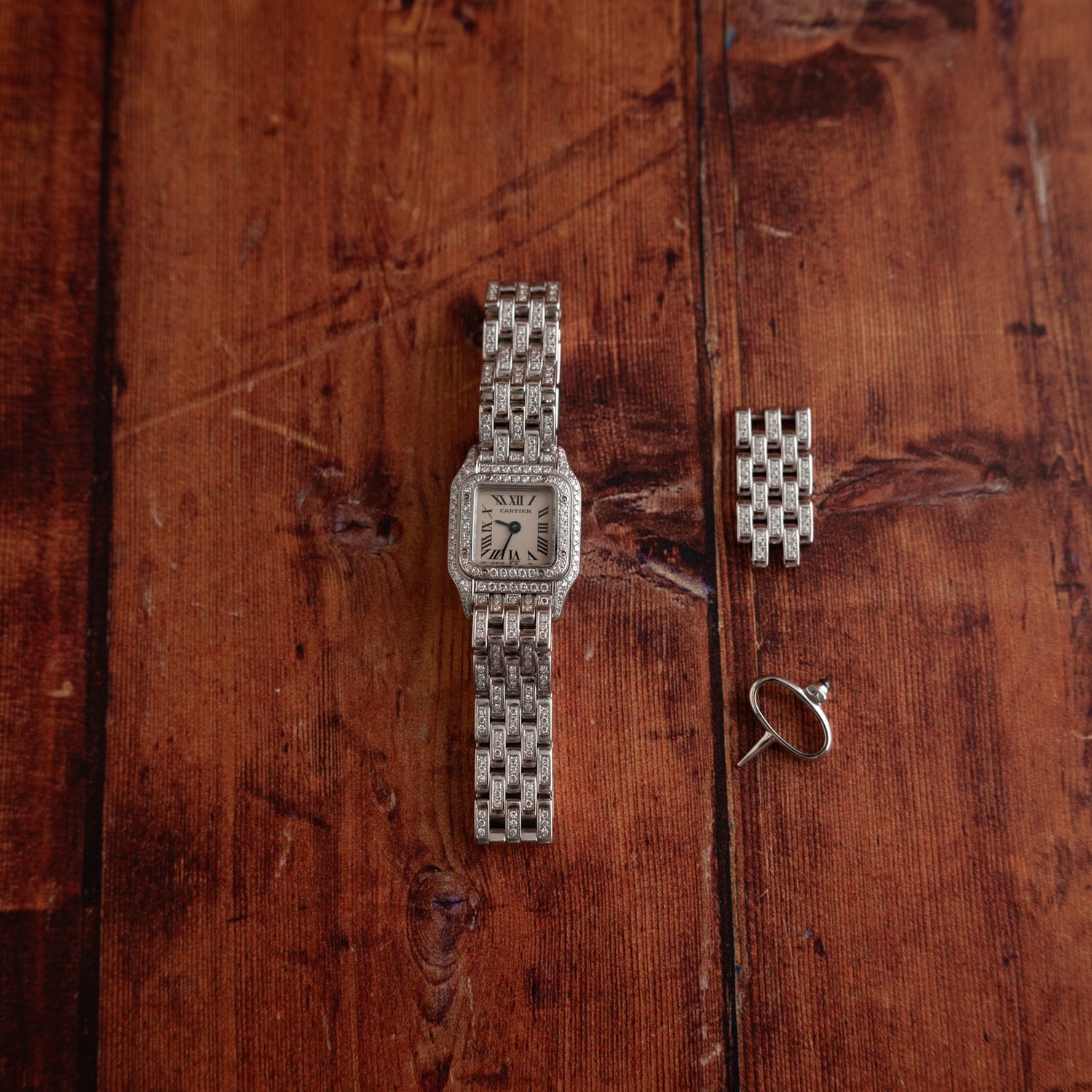 This piece is powered by a quartz movement, befitting a jewelry-forward piece like this one. This watch is elegance personified in white gold. It is truly the most elevated expression of Cartier for women, and would serve as an accent in a seasoned collection, or as a token dress watch for important events.