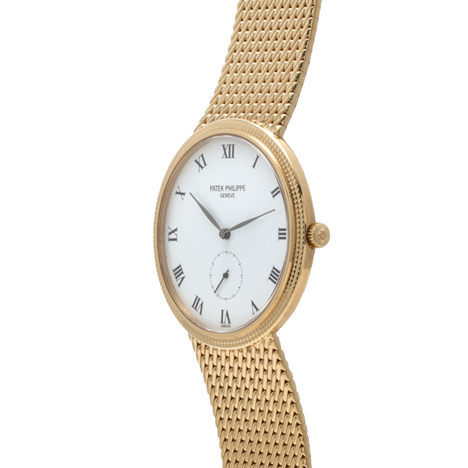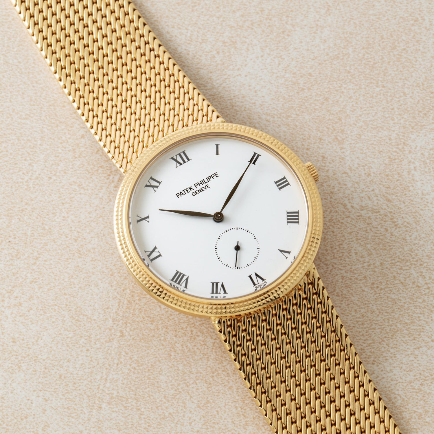 This particular 3919 is one of the rarest — and arguably, the coolest — examples. Executed in 18K yellow gold, this incredible piece has no lugs, and instead features an integrated bracelet with a beautiful finish. Patek’s skill in bracelet making is rarely discussed, but this bracelet is proof the brand has command of not only watchmaking, but also the jewelry elements of fine timepieces.