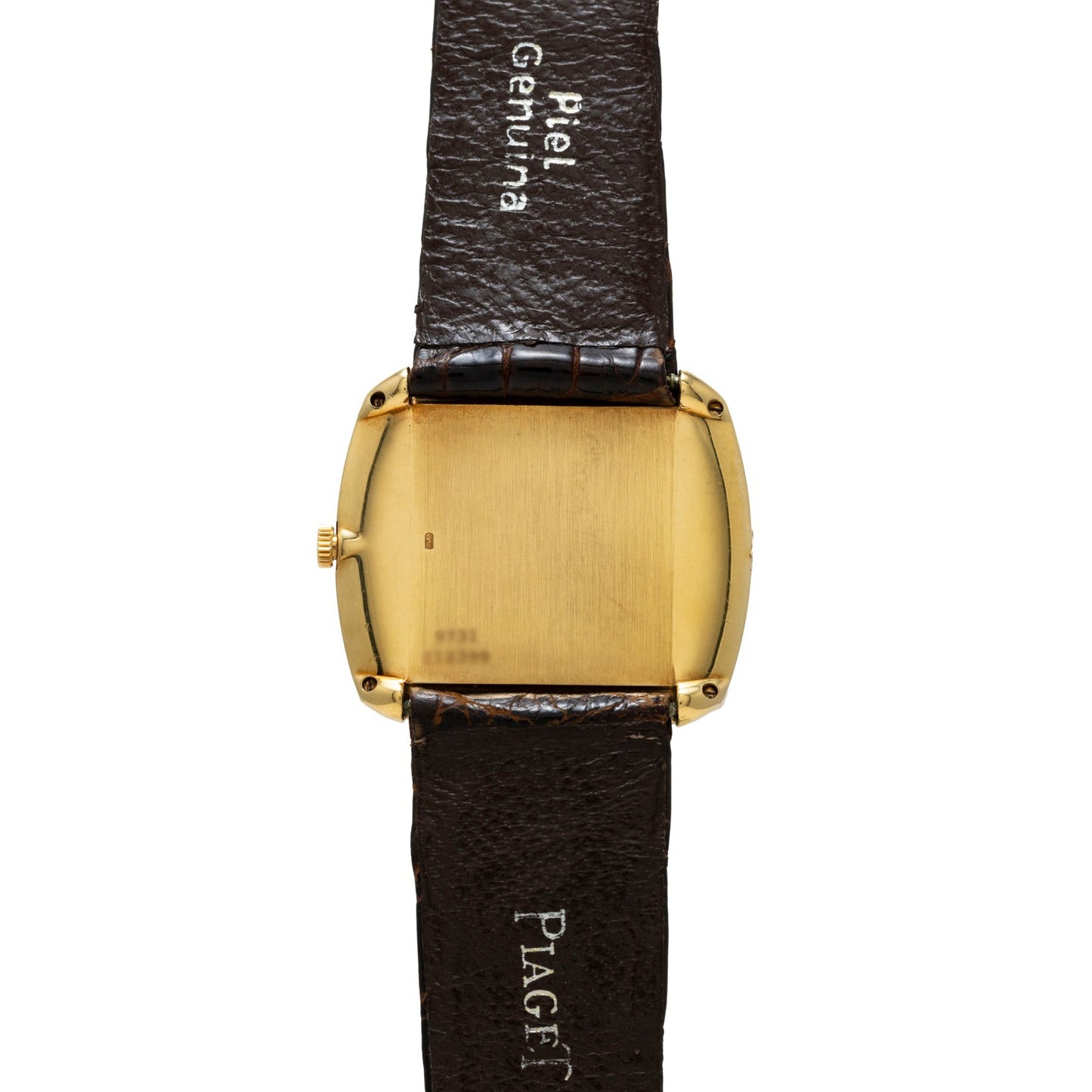 Complete with a signed clasp, this Piaget features a matching 'dauphine' handset, and a signature manually-wound movement within. This piece has also replaced the conventional flat bezel aesthetic found on most Piagets of this variety with a contoured bezel reinforcing the 70s TV style cushion of the case.