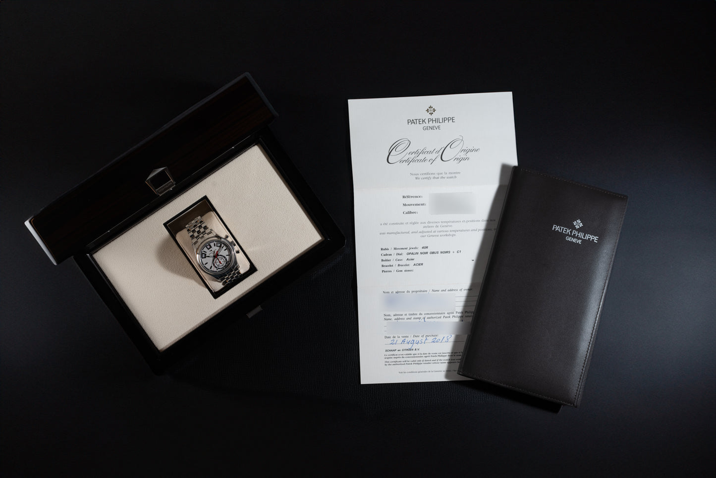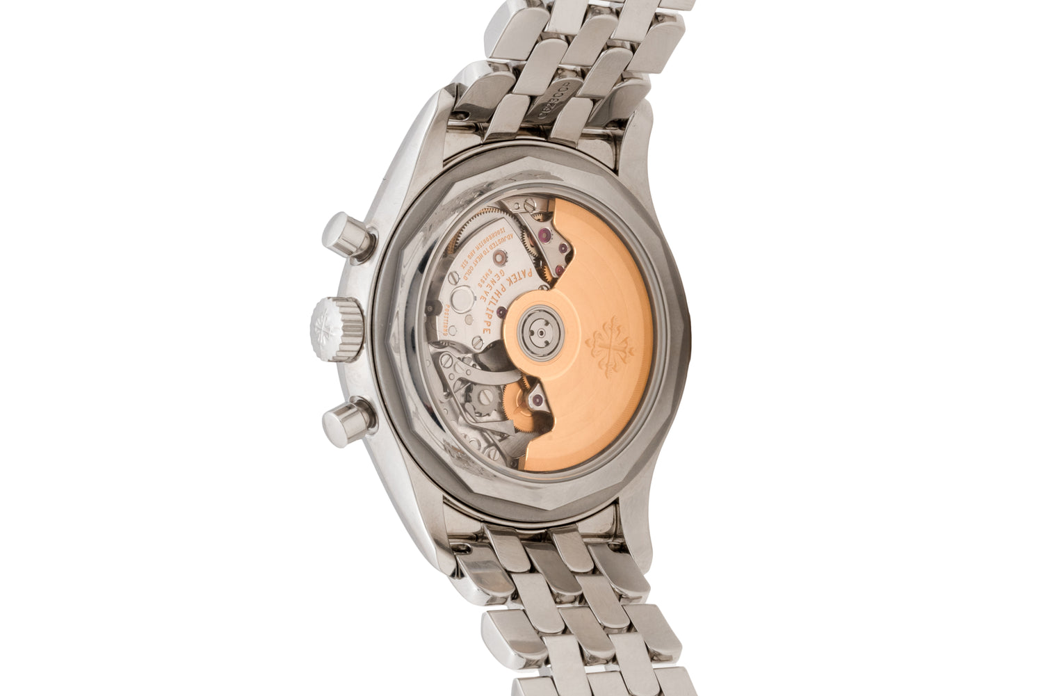 The backside of the case features a sapphire exhibition crystal providing a window through which you can admire the self-winding Caliber CH 28-520 C, complete with 21k gold winding rotor. It comes fitted to its factory stainless steel multi-link bracelet with a signed double deployant clasp. What’s more, this piece is accompanied by its inner and outer boxes, factory books, additional links, corrector tool, signed leather folio and a Certificate of Origin dated August, 2018.