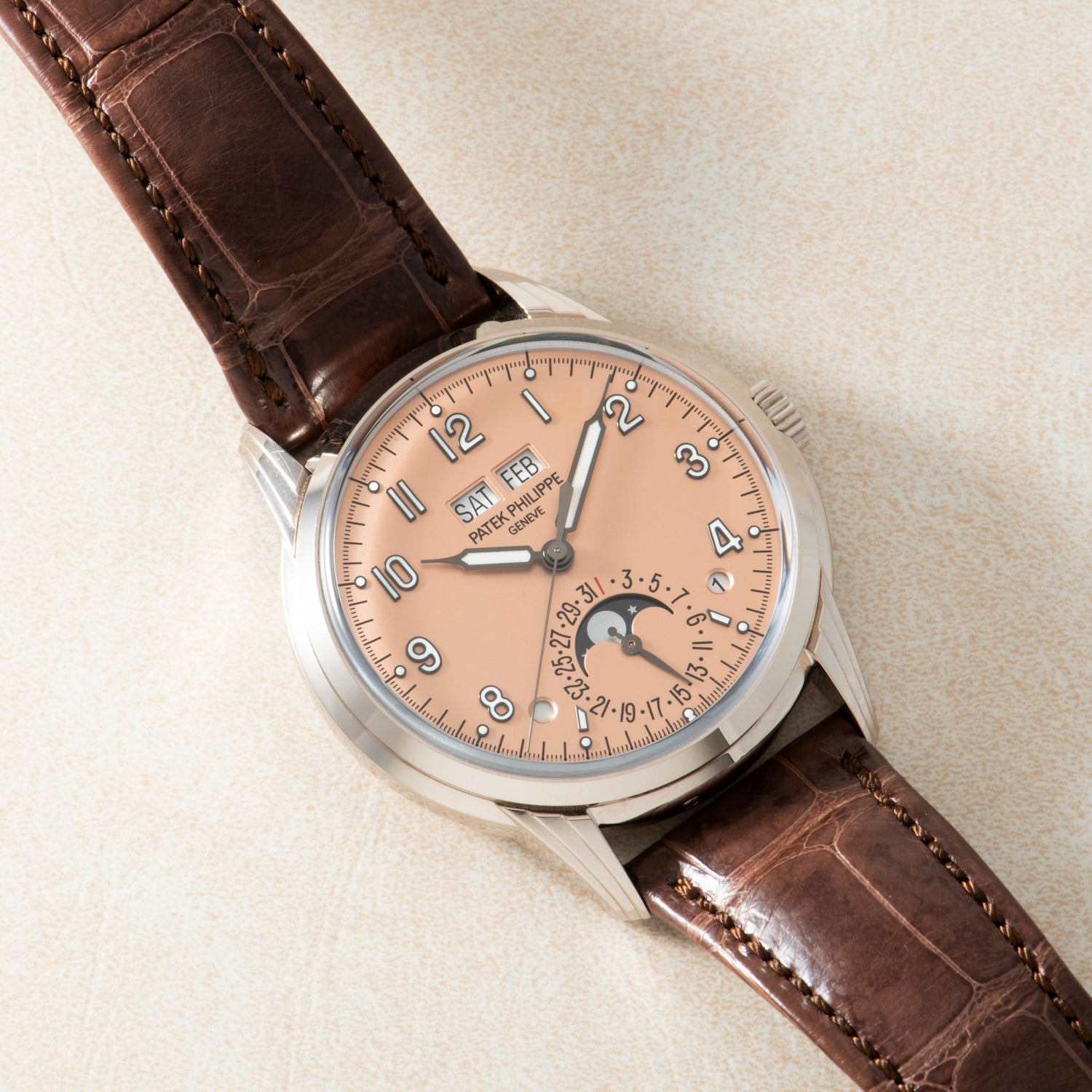 Patek has been making such watches since the Second World War, and continues to make some of the most superlative quantieme perpetuelles on the market. This particular example is a Reference 5320G, one of the best-looking QPs ever designed.