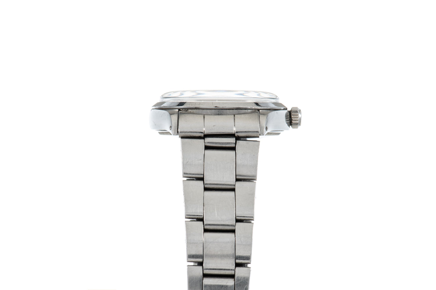 This example, a Reference 5500, dates to circa 1972 and features a 34mm stainless steel Oyster case with holey lugs, an acrylic crystal, a signed crown, a lovely silver 'linen' Tritium dial with applied indices a matching handset, and a stainless steel Oyster bracelet with a signed blade clasp. Best of all, it’s powered by a Rolex chronometer automatic movement.