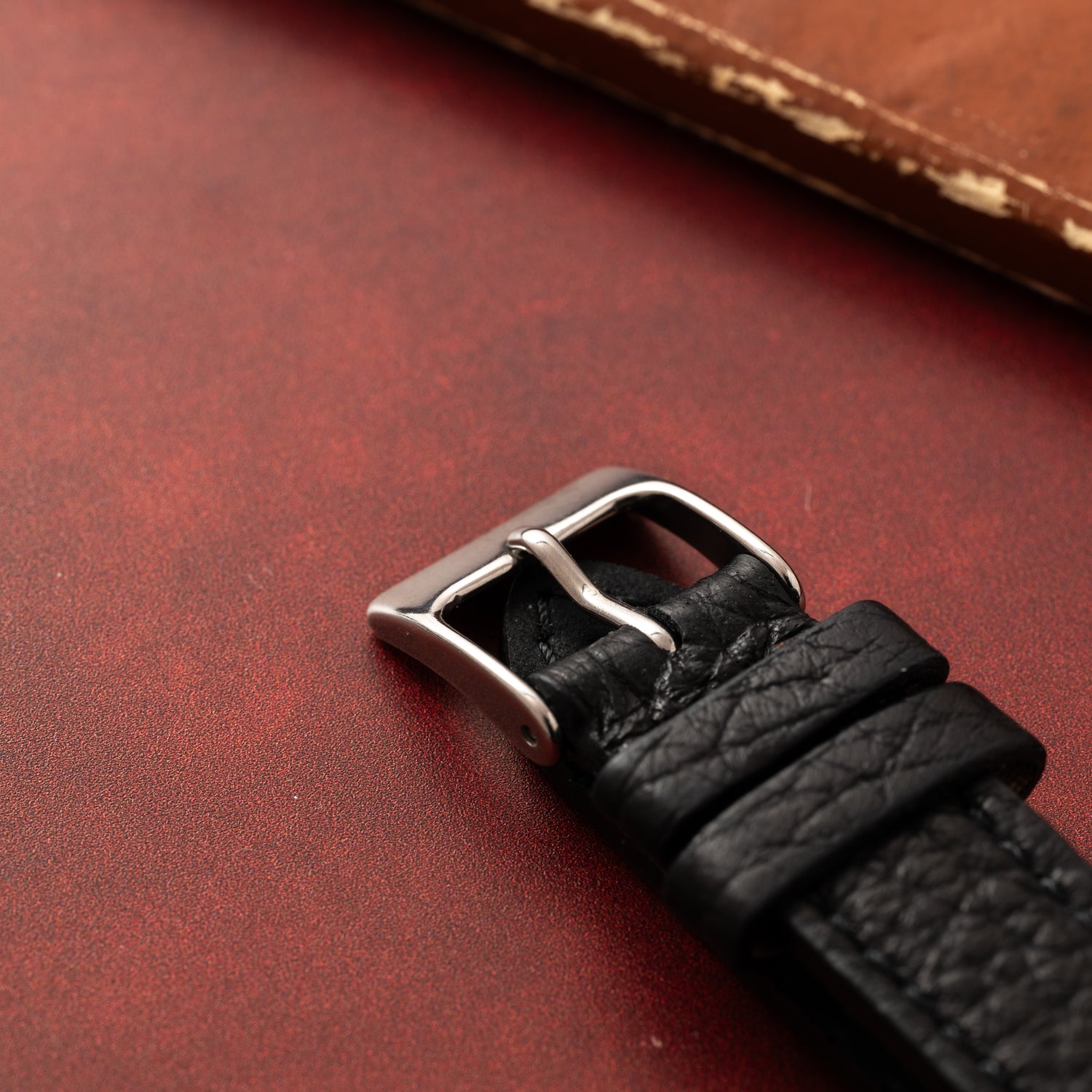 This particular piece, likely part of the Veri-Thin collection, is a testament to that playfulness. The 10K gold-filled square case (27mm x 27mm) features scalloped edges and tiny "nail head" rivets along the bezel — a design both daring and delightful, even by today's standards. The black dial, with its crisp railroad minute track and gilt accents, gives it a quiet confidence that feels more jazz club than boardroom. Inside beats a hand-wound Gruen movement, keeping time the old-fashioned way.