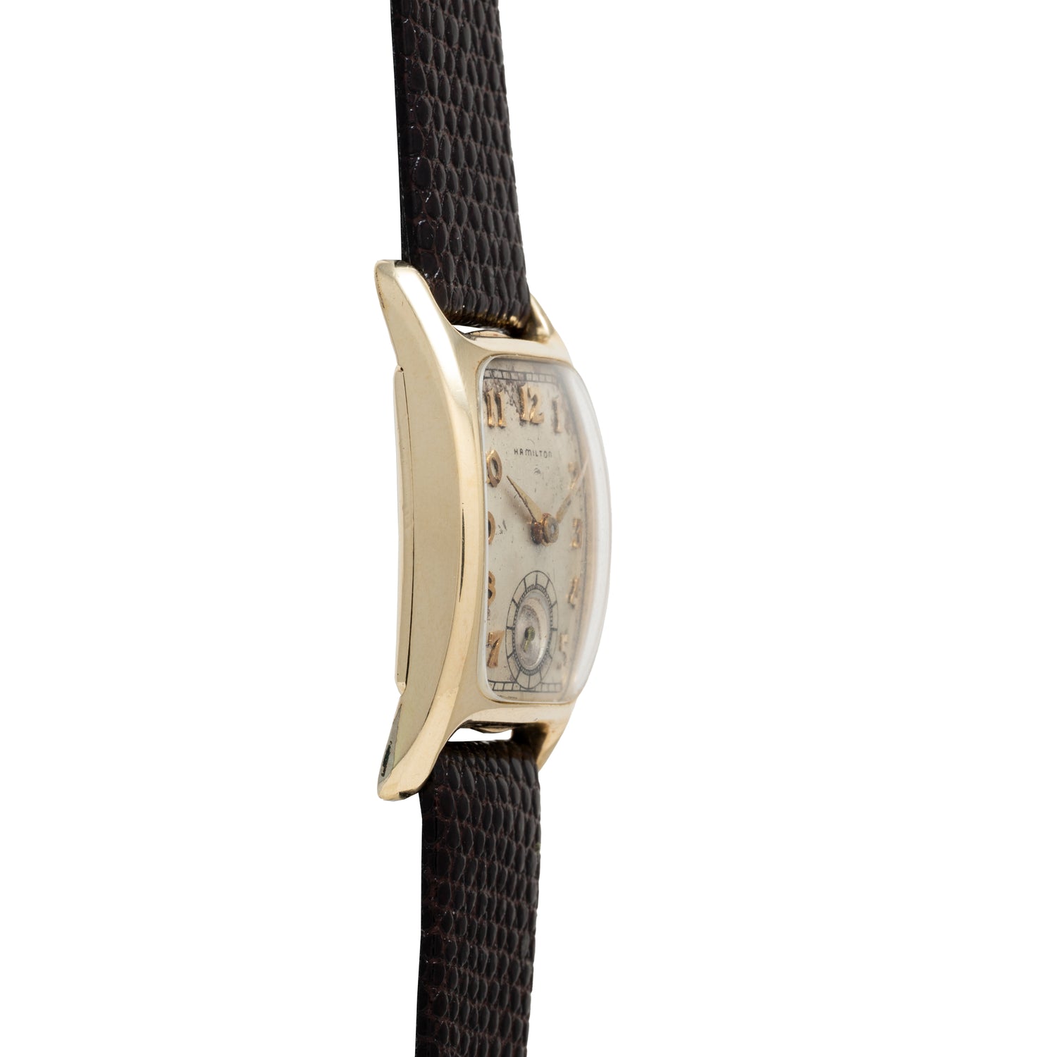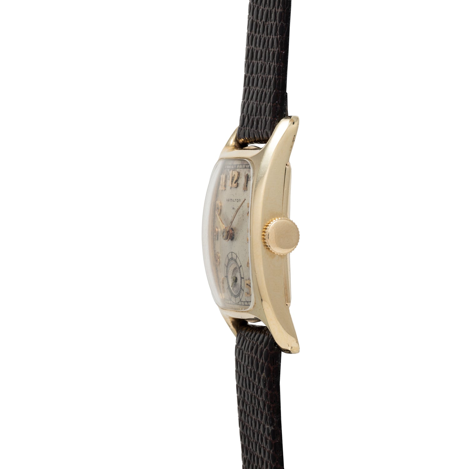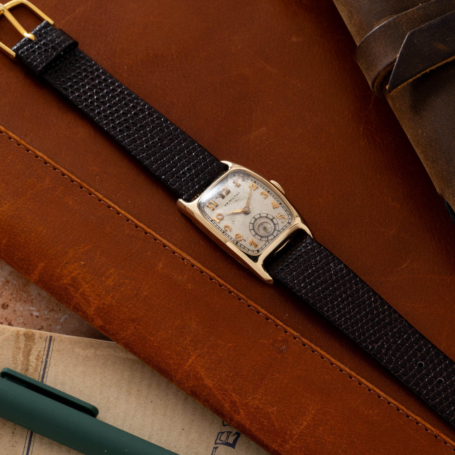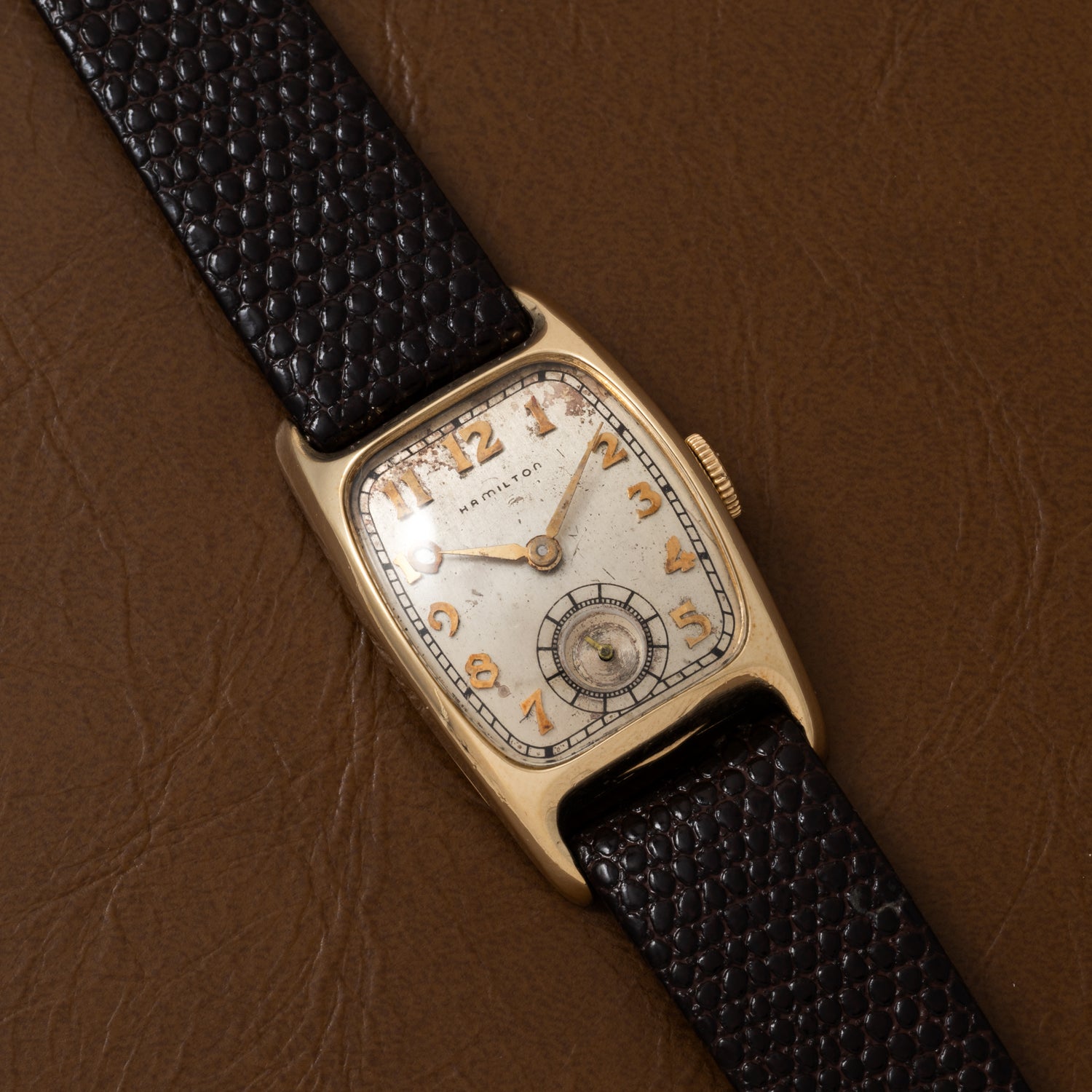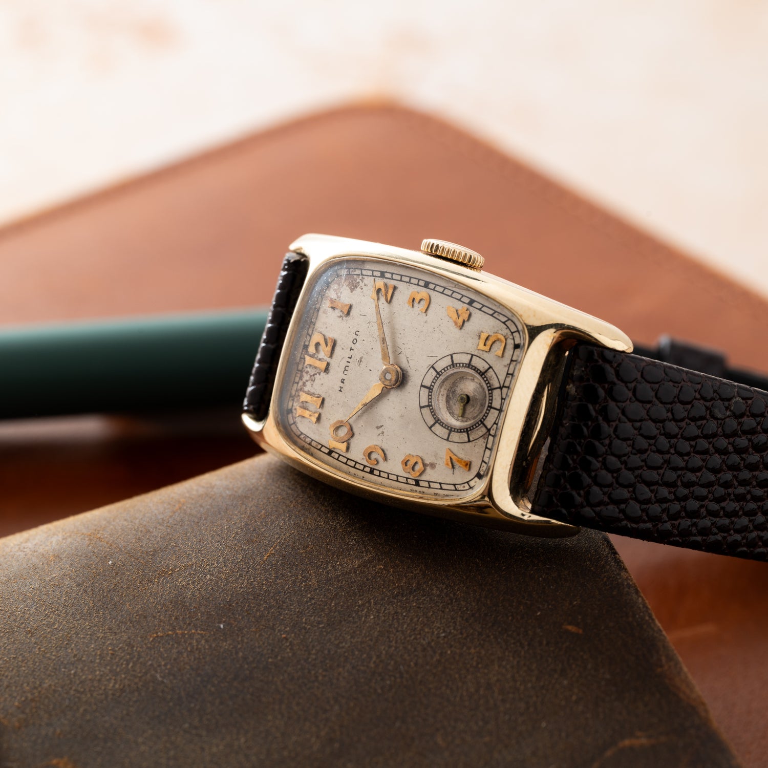 These early wristwatches were named after their shapes: Tonneau, Square Cut Corner, or Cushion were just some of the models Hamilton released in the 1920s. But after a few years, these models were given names that evoked images of success and prosperity. Certain watches were named after famous golf courses or country clubs, such as Meadowbrook (a country club in Northville, MI outside Detroit) or Oakmont, a golf course near Pittsburgh, PA.