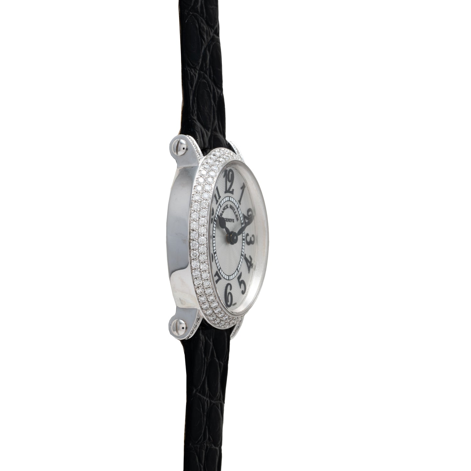 This Franck Muller, Ref. 1628 B QZ V D, embodies everything that makes the brand tick: A departure from the more traditionally-inspired cocktail watch dress forms for which the brand is famous, the Infinity Oval brings a degree of playfulness to the FM catalog: Housed in a 22mm white gold oval-shaped case with a blue cabochon-set crown and a sapphire crystal, it manages to merge the flair of 20th-century dress watches with the reliability of modern tech. That, and it features just the right amount of round-cut diamonds, which adorn the bezel and lugs.