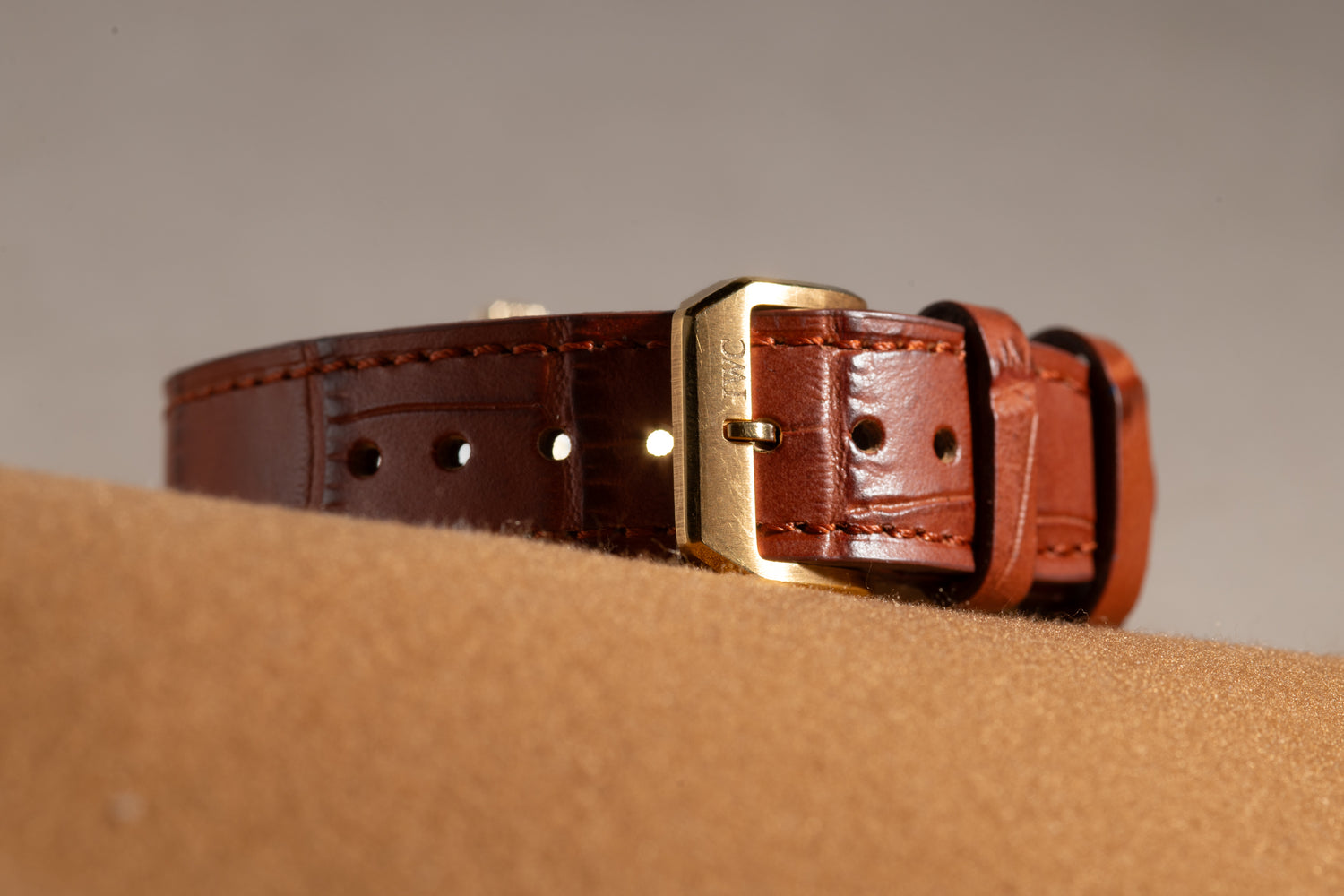 Powered by a self-winding Jaeger Le-Coultre Calibre 891/2 movement visible through a sapphire exhibition caseback, it comes outfitted on an Analog:Shift Old Fashioned Brown Alligator-Pattern Leather Strap, this neo-vintage IWC is a candidate for an everyday wearing timepiece that is equally practical and easy on the eyes. This piece also includes its inner box and booklet.
