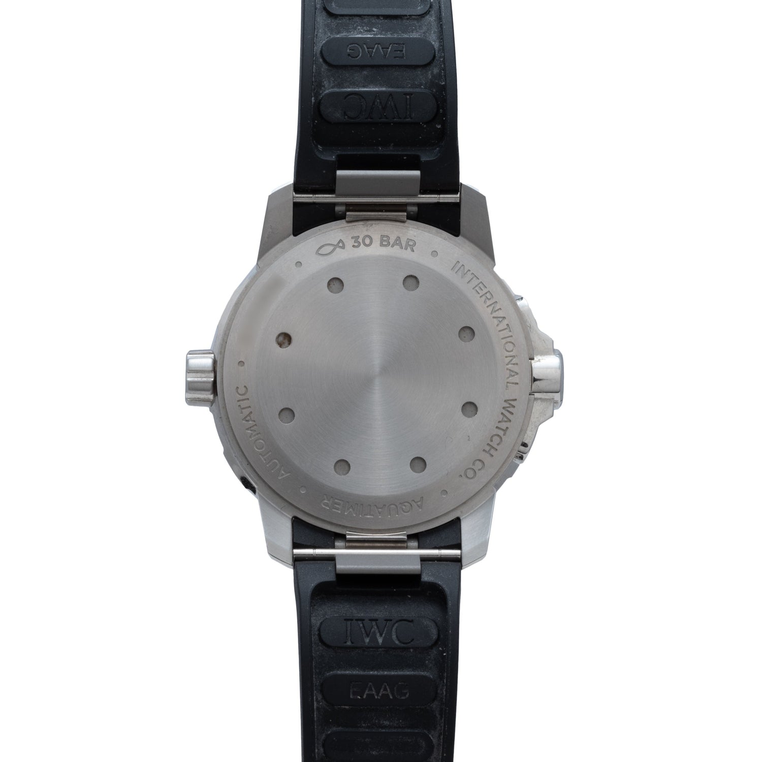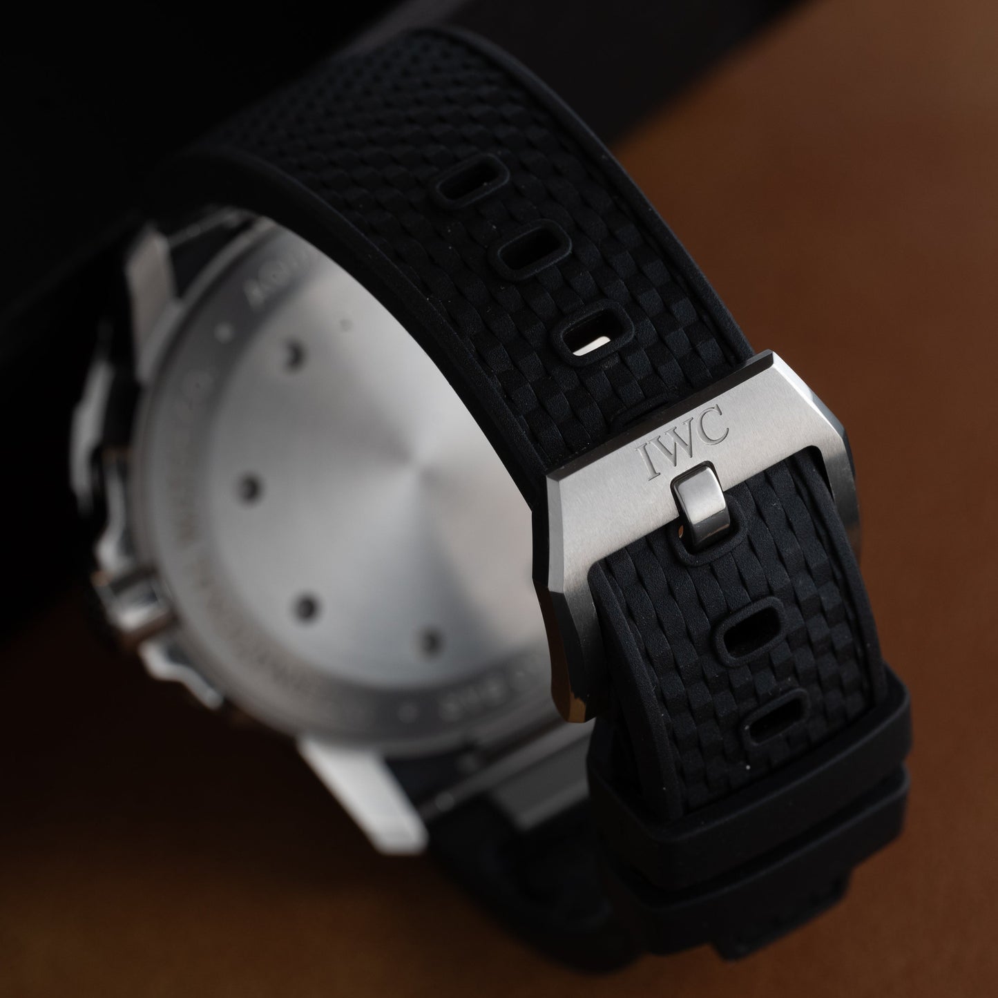 This particular Aquatimer, a Reference IW329001, dates back to 2022 and features a 42mm stainless steel case, a sapphire crystal, a signed screw-down crown, and a rotating inner and outer bezel equipped with the manufacture’s SafeDive Device.