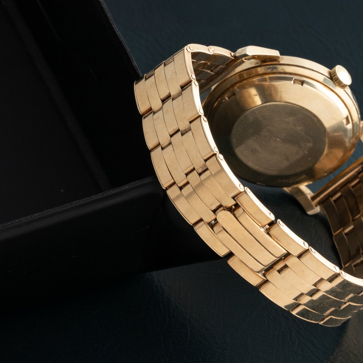 Take this vintage dress watch, for example: Dating to circa the 1950s and housed in a 36mm 14k yellow gold case with fancy lugs and a polished bezel, it features an absolutely gorgeous multi-tone silver dial with applied 'arrowhead' and 'Breguet' indices with a matching 'dauphine' handset, and Longines' Calibre 19AS automatic-winding movement powering it within.