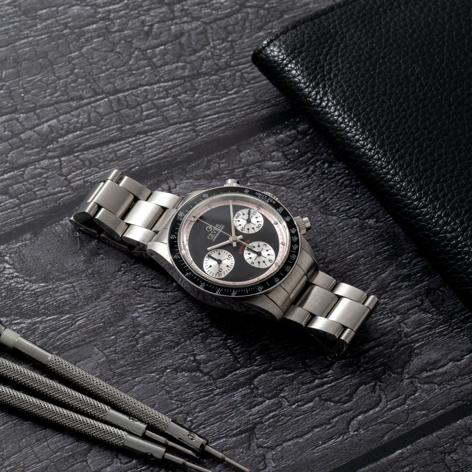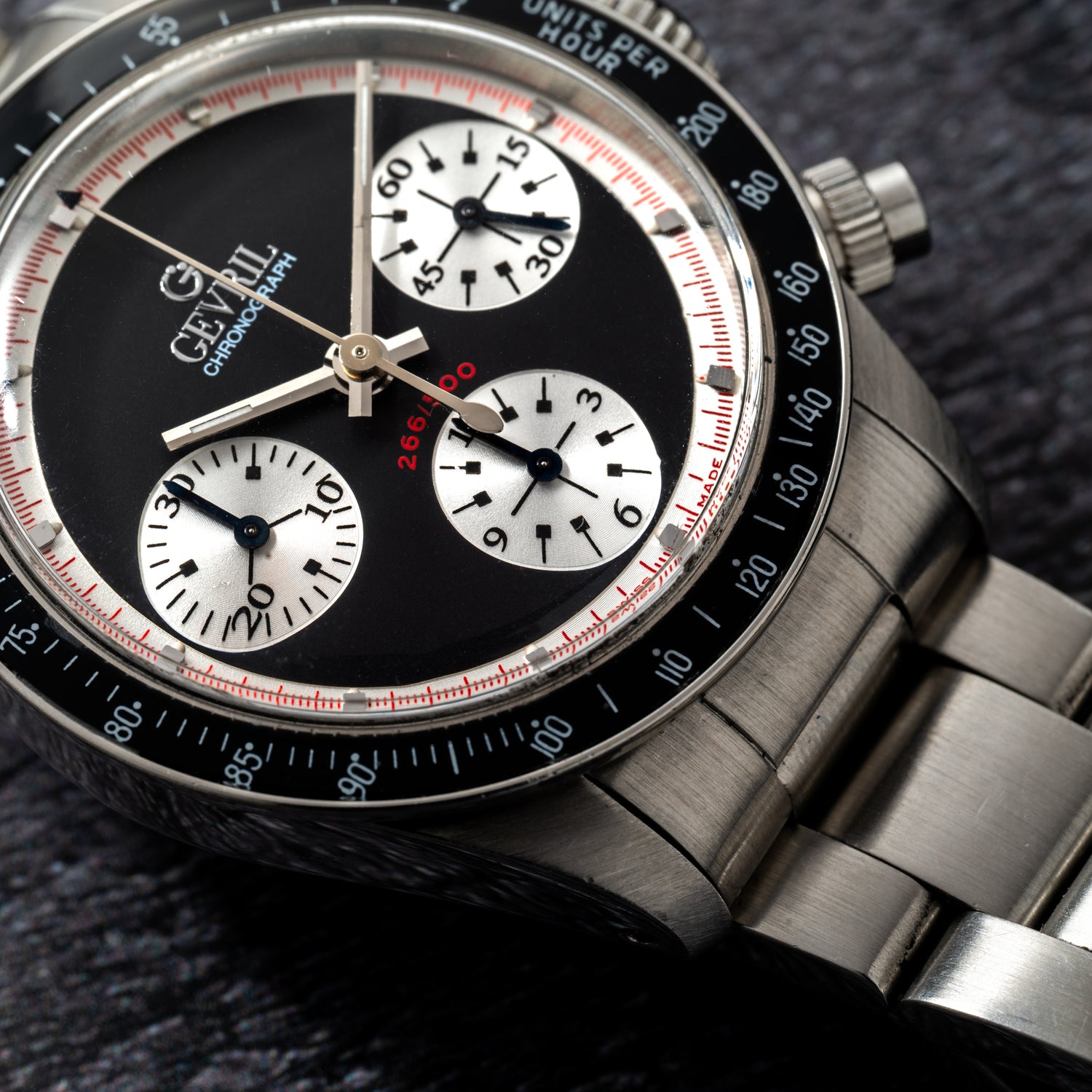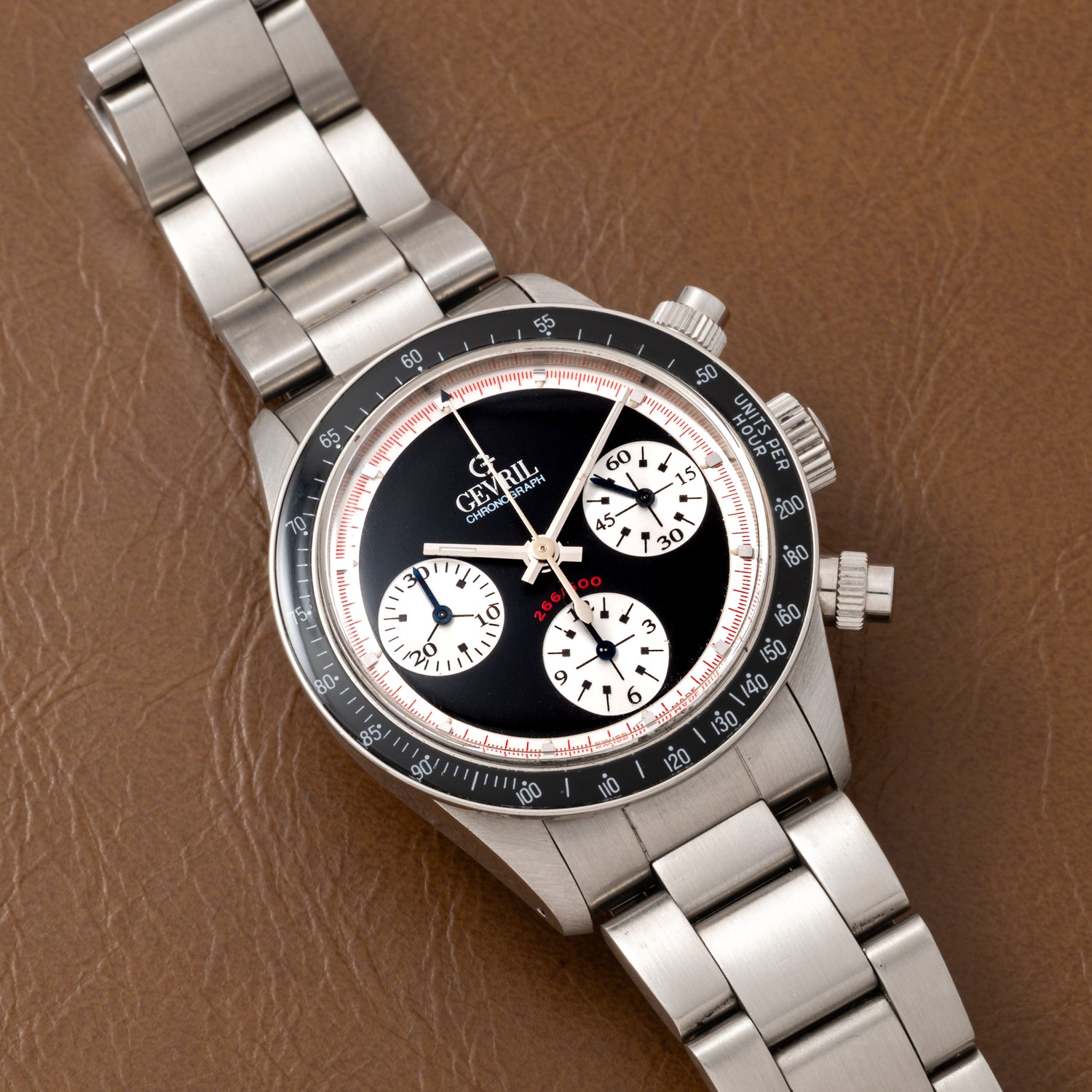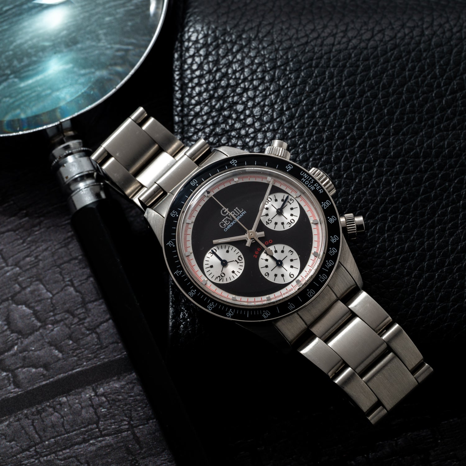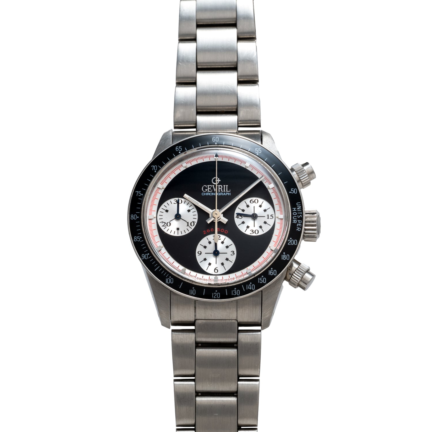 Gevril, a Swiss-founded watchmaker based in New York City has a history dating back to the mid-18th century. Produced in the late 1990s by the brand, the Tribeca is essentially a love letter to the ‘Paul Newman’ Daytona, and was offered in a strictly limited series in steel and gold versions, making an aesthetic once available only to the most well-heeled (or luckiest) collectors suddenly available to a wider audience.