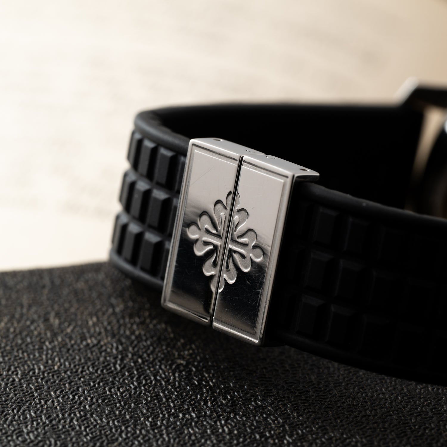 The Reference 5060J, launched in 1996 for the 20th anniversary of the Nautilus, was a kind of transitional watch. Borrowing features from the Nautilus but doing away with the famed case “ears” of that porthole-inspired model and adding lugs, it provided the basis for the Reference 5060A in 1997, the first model to bear the Aquanaut name. This model would go on to form the basis of a full collection of luxury sports watches that provided the entry point into the Patek Philippe catalog.