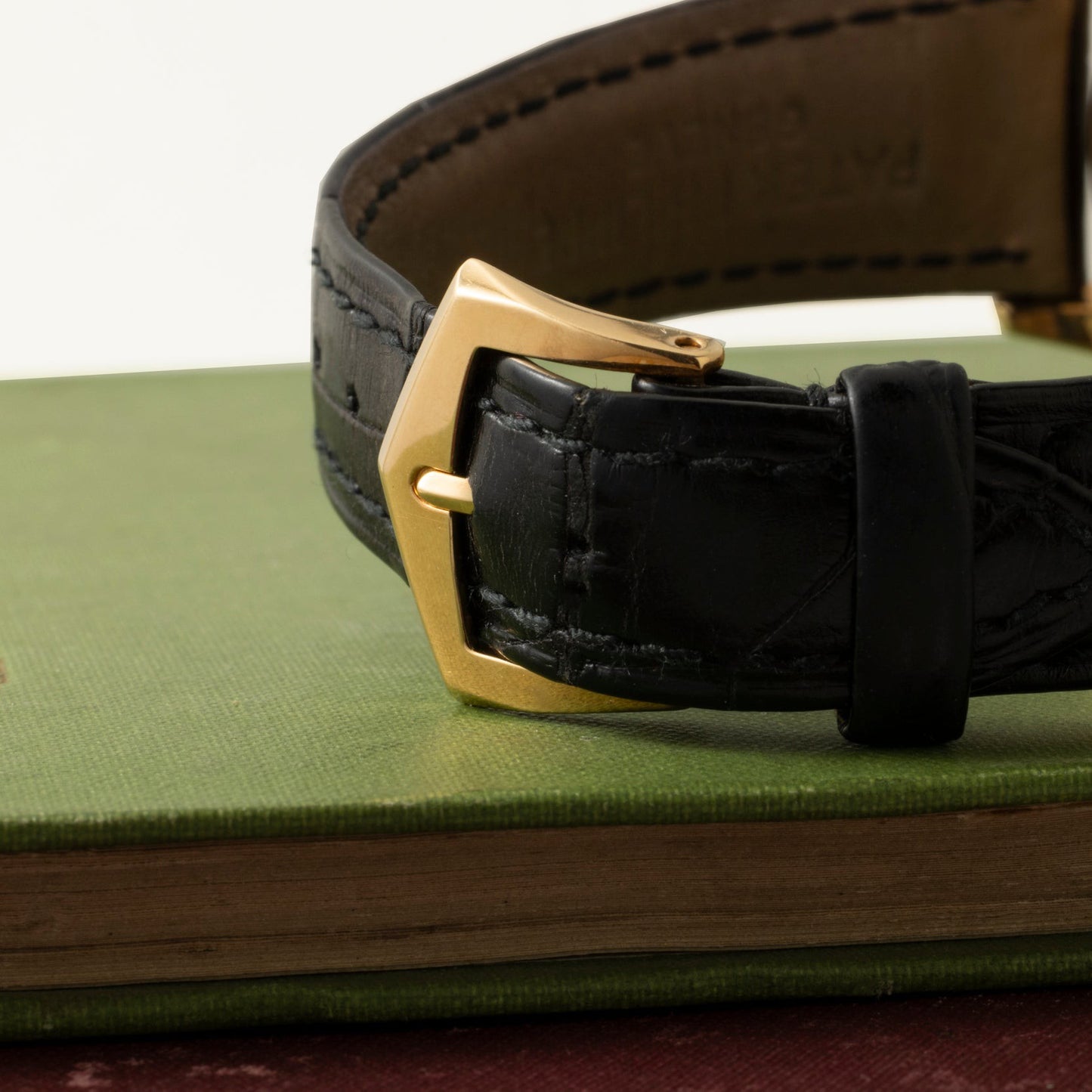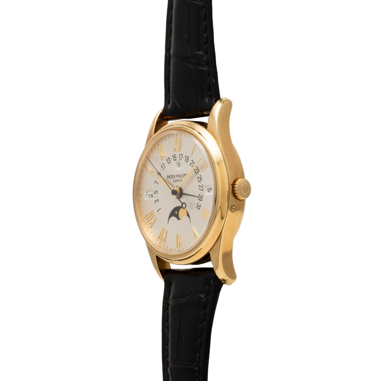 Take this reference 5050J, for example. A relatively underappreciated reference, the 5050 was presented in 1993 as a return to classic Patek. Influenced by many of Patek’s retrograde-style pocket watches, in contrast with the prevailing perpetual calendar of the era, the 3940, the 5050 felt a bit older and more traditional. The lugs are fuller and the case has slab sides. The profile is a bit more substantial. The 5050 displays the date with retrograde, and the day, leap year indication, moonphase and month in apertures.