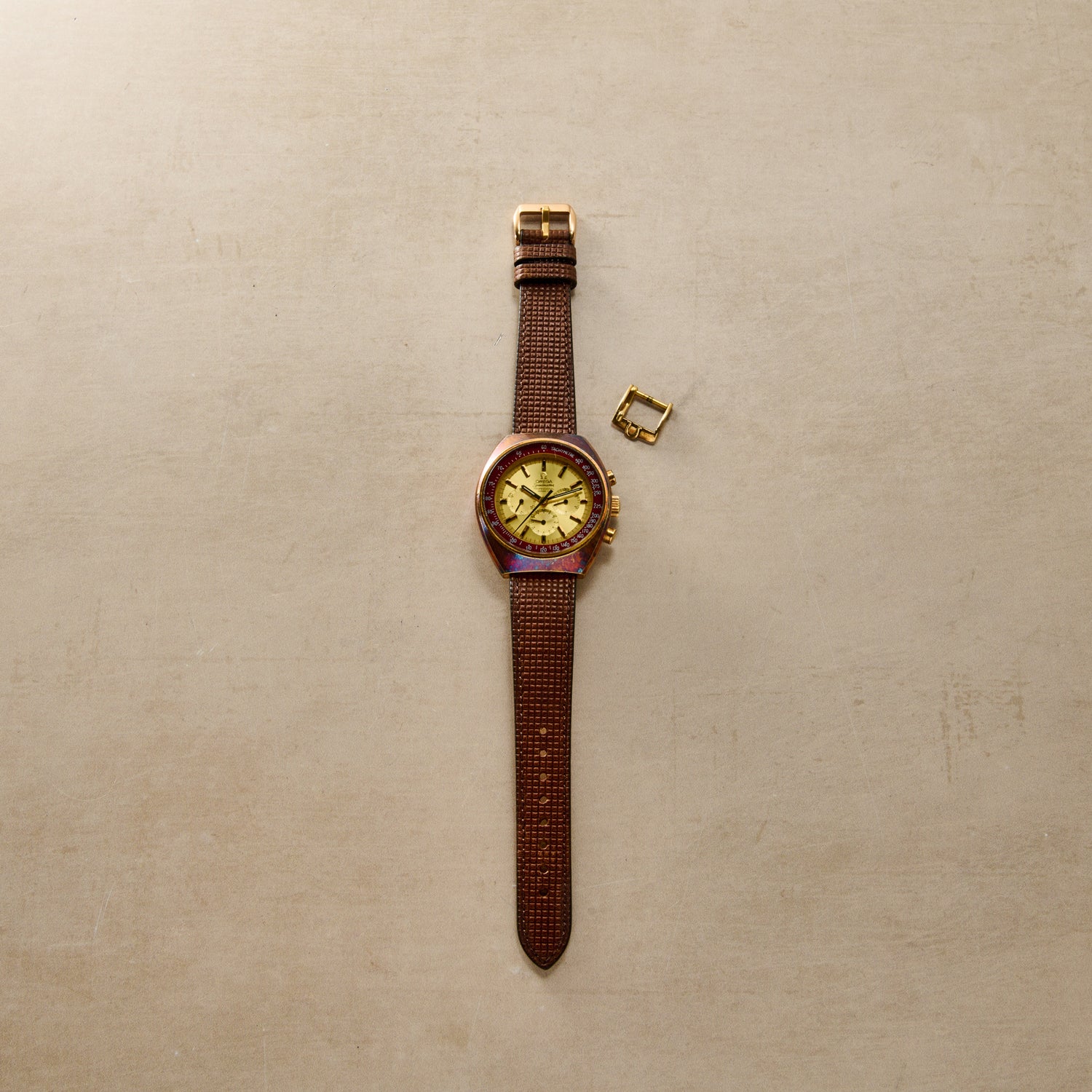 This particular example caught our eye as a true survivor, an excellent example with minimal case wear and decent plating, not to mention an absolutely stunning original dial! As we found it, it was already one of the nicest gold plated Speedies we had ever come across.