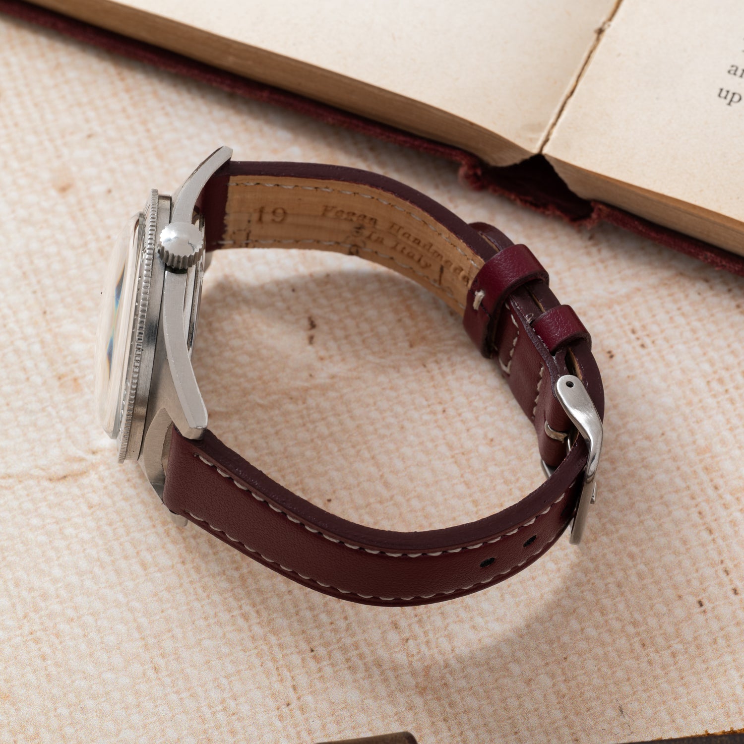 There is a watch for every wrist, and this watch waits, happily ticking away, for a man of action, of exploration and of style. This particular 38mm piece dates to the 70s and features a stainless steel bezel graduated up to the 30-minute bezel marker and a domed acrylic crystal that only amplifies its vintage charm.Â
