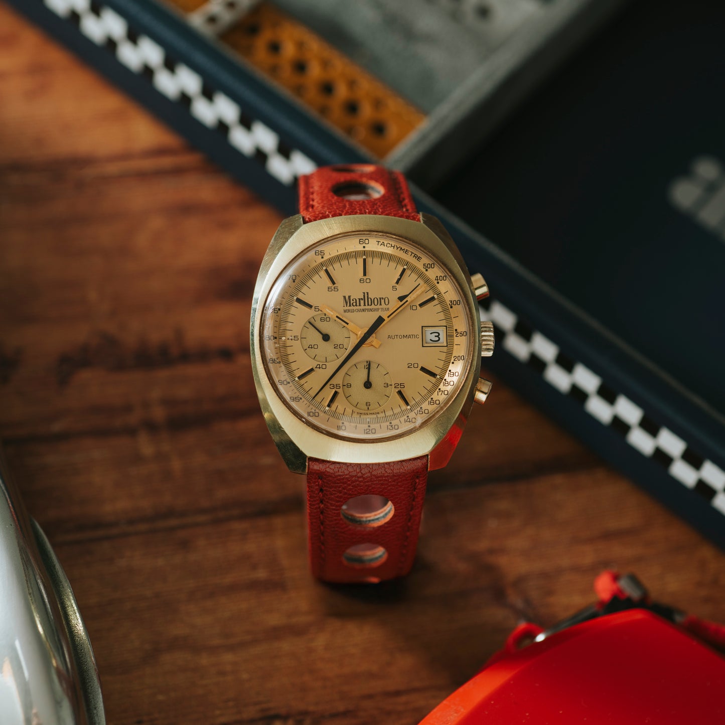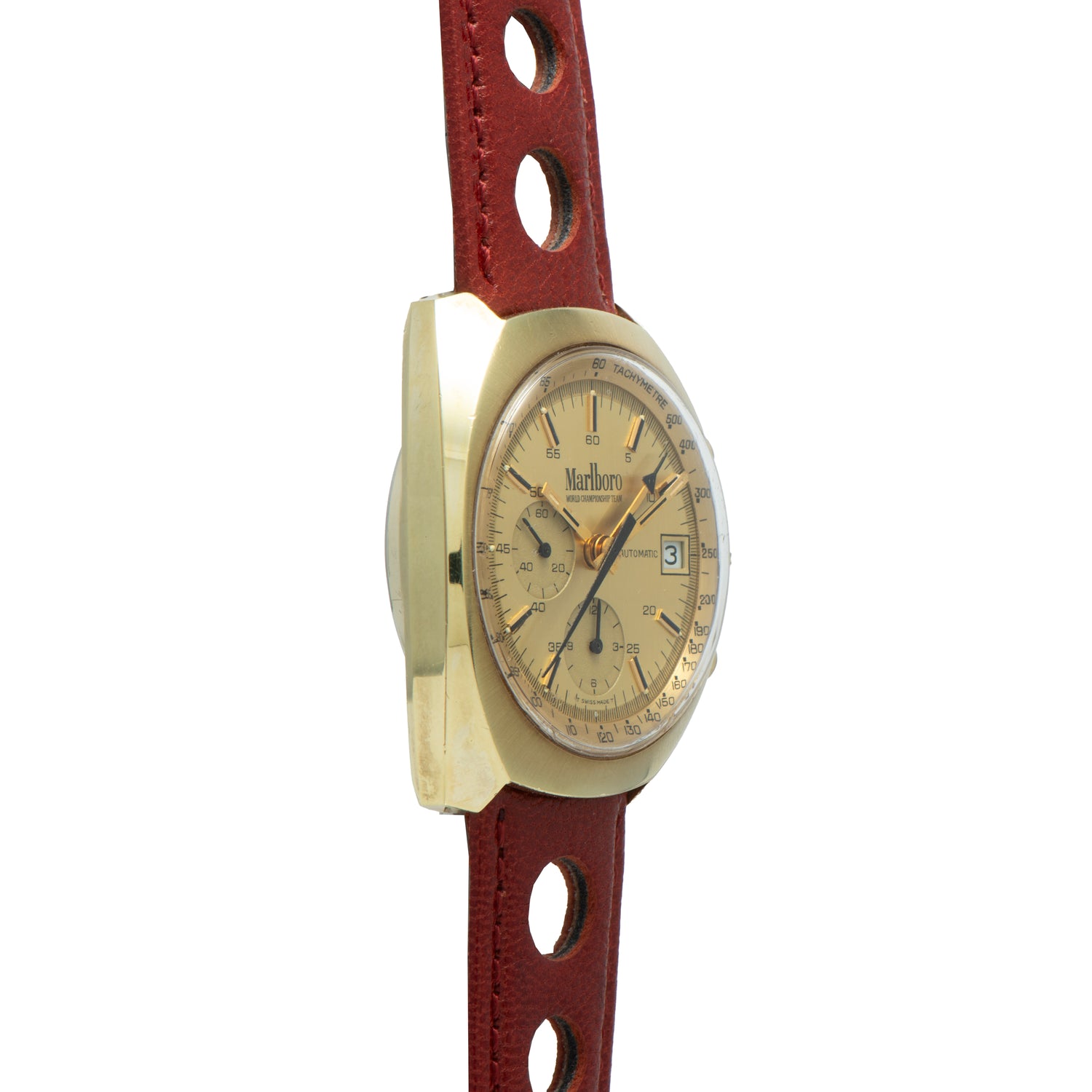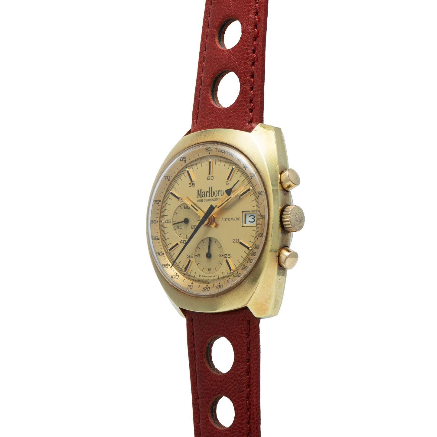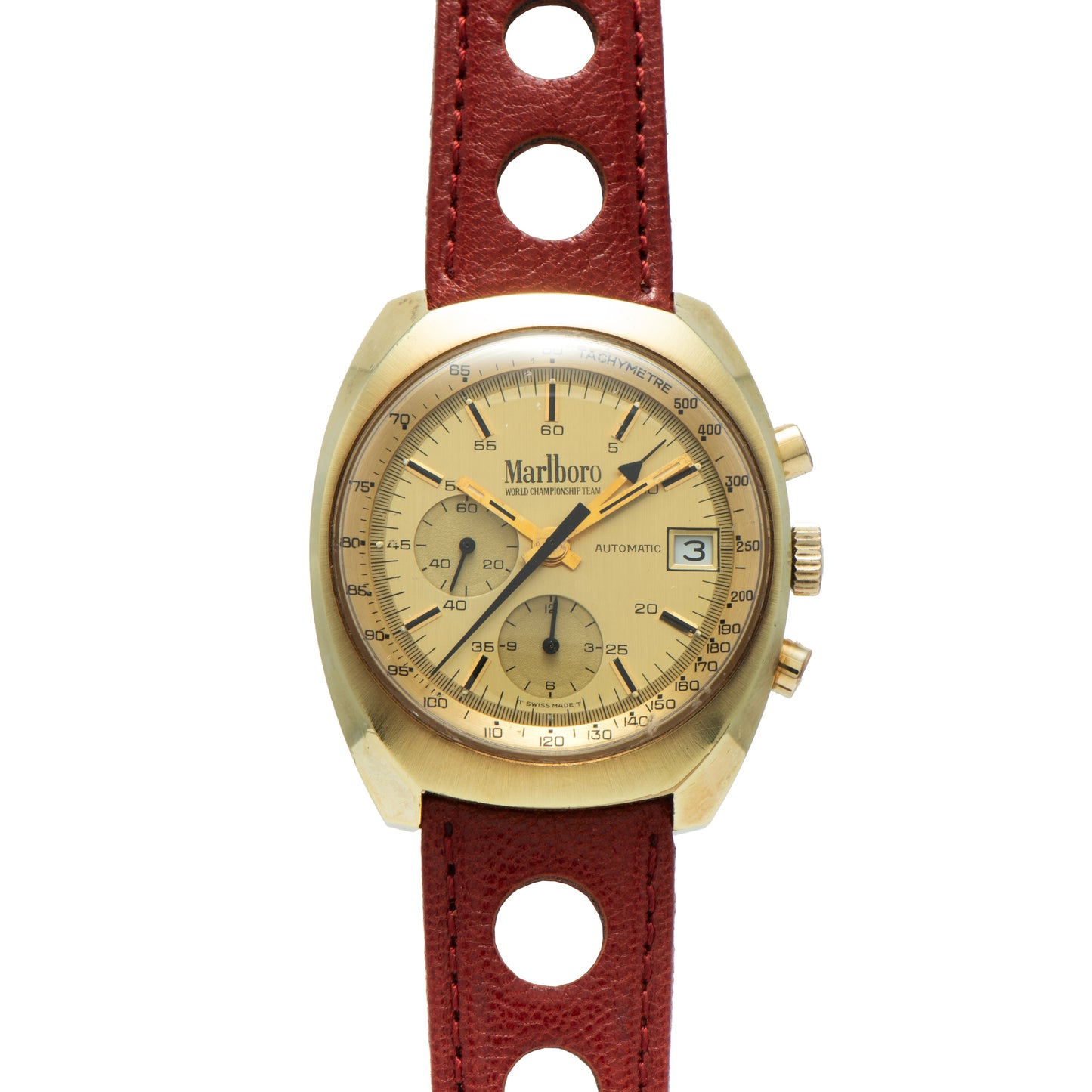With its 22K gold-plated case and admittedly cool looking Marlboro logo, this watch is an awesome relic of a bygone era and a fantastic conversation piece.
