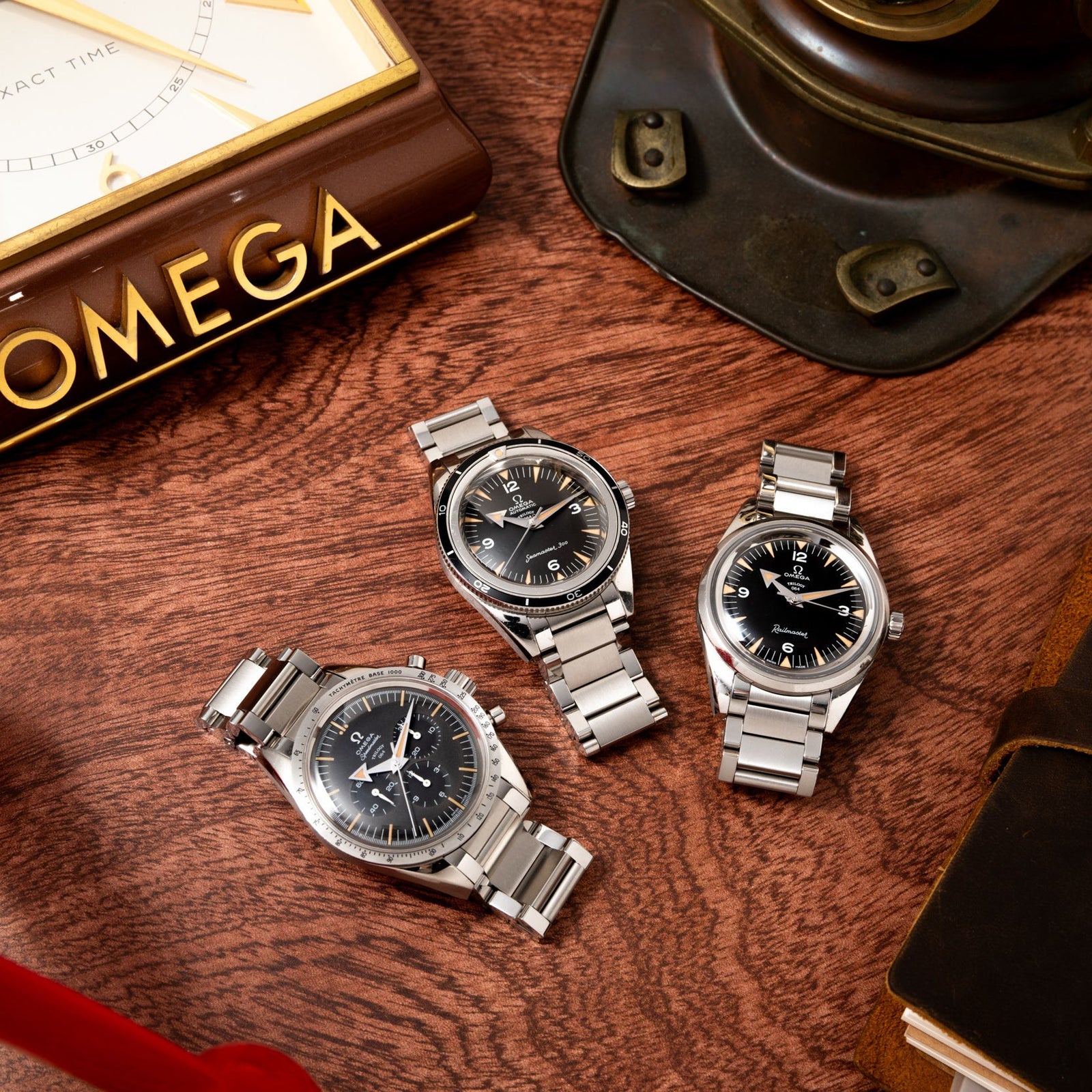 Despite this extraterrestrial heritage, in the beginning the Speedmaster was only intended for terrestrial pursuits. Omega released the Speedmaster in 1957, in the midst of a craze for racing chronographs. The name "Speedmaster" followed the naming trend set by the Seamaster and Railmaster models, and was also a subtle nod to the innovative brushed stainless steel tachymeter bezel. The first reference of Speedmaster, the CK 2915, contained the Lemania Calibre .321 movement, developed by famed movement-maker Albert Piguet in 1946. Over the next few years, the Speedmaster saw multiple changes in dial and hand configurations, but at its heart retained the design elements that would be carried down through the decades: the triple-register layout, domed Hesalite crystal, and of course, the tachymeter bezel, signifying Omega's intention for the Speedmaster to be used in automotive sports.Â