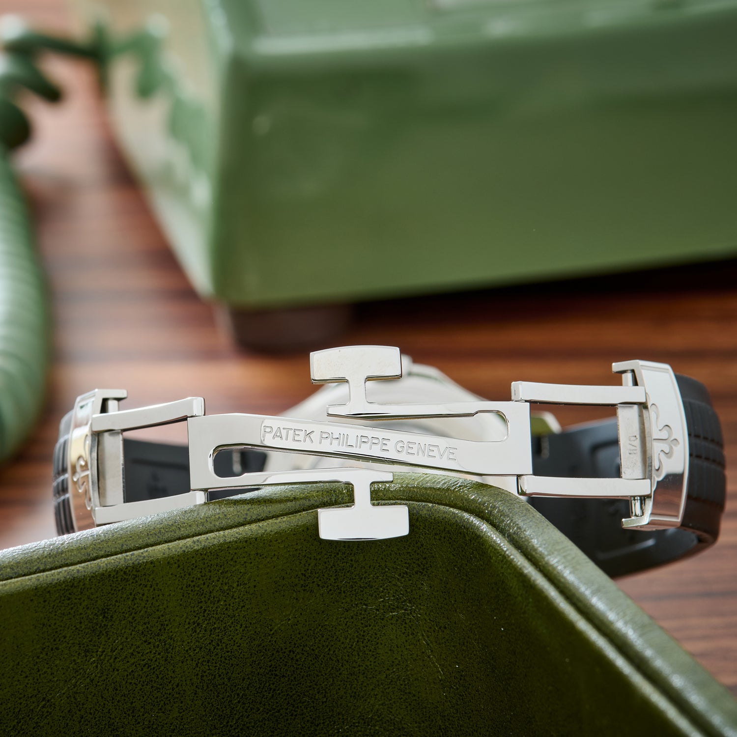 The Reference 5060J, launched in 1996 for the 20th anniversary of the Nautilus, was a sort of transitional watch. Borrowing features from the Nautilus but doing away with the famed case “ears” of that porthole-inspired model and adding lugs, it provided the basis for the Reference 5060A in 1997, the first model actually bearing the Aquanaut name. The Aquanaut would go on to form the basis of a full collection of luxury sports watches that provided the entry point into the Patek Philippe catalog.