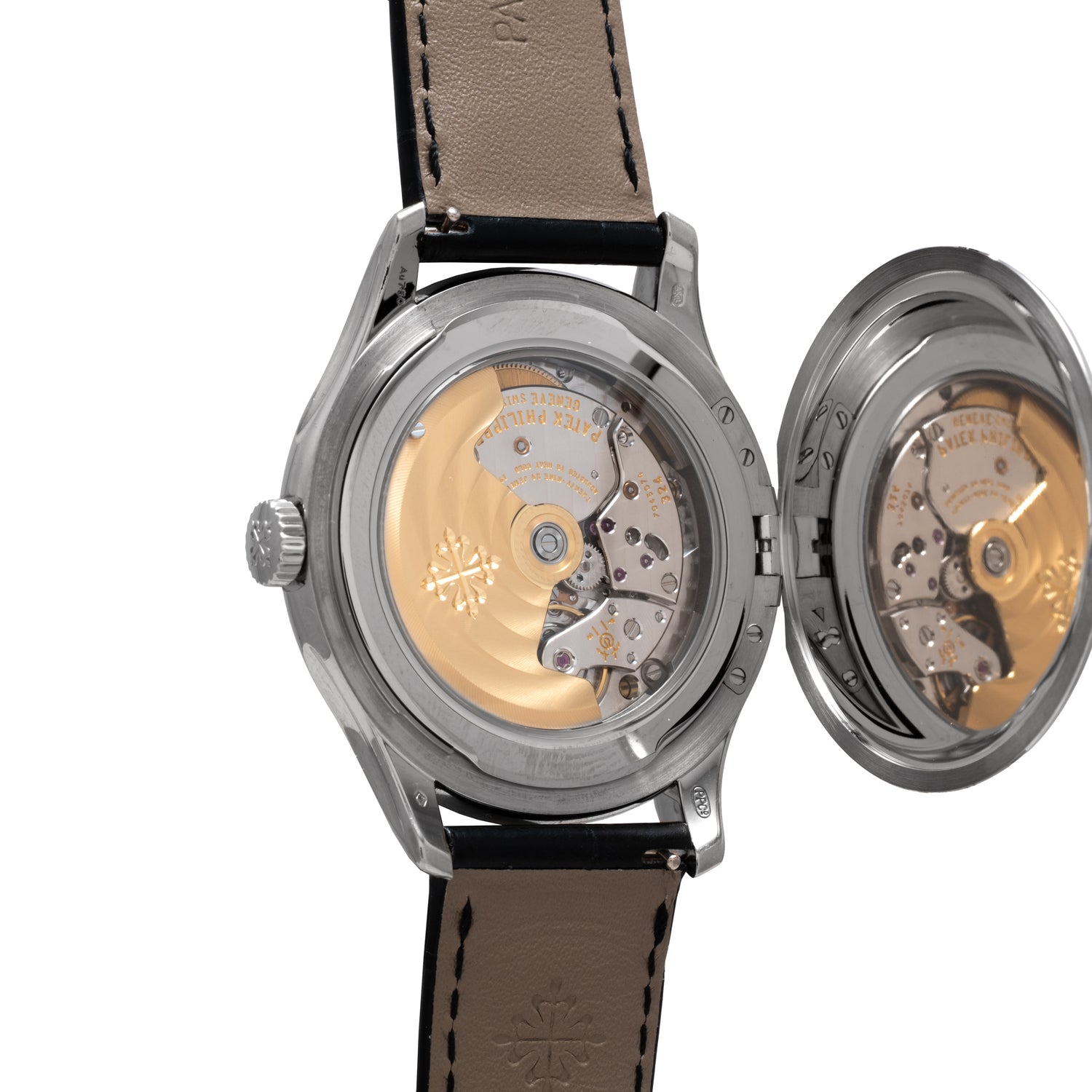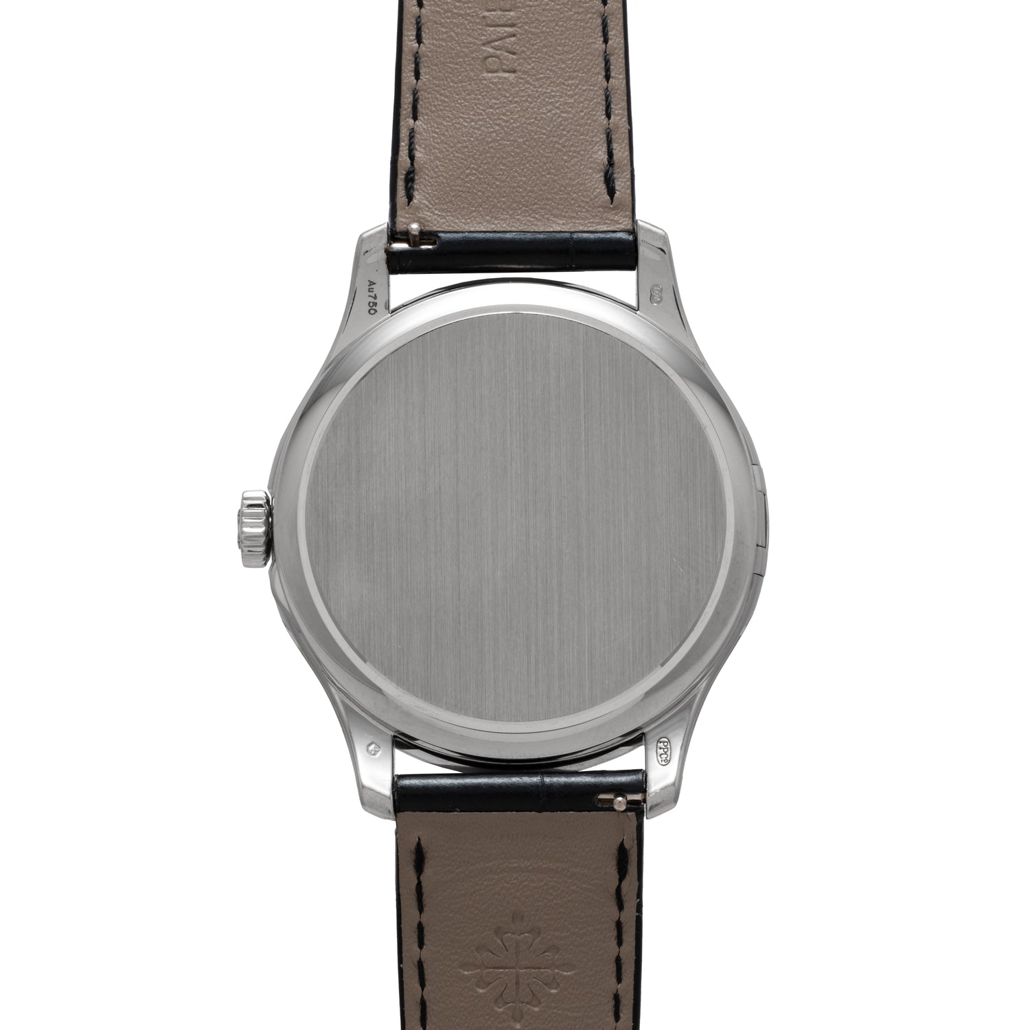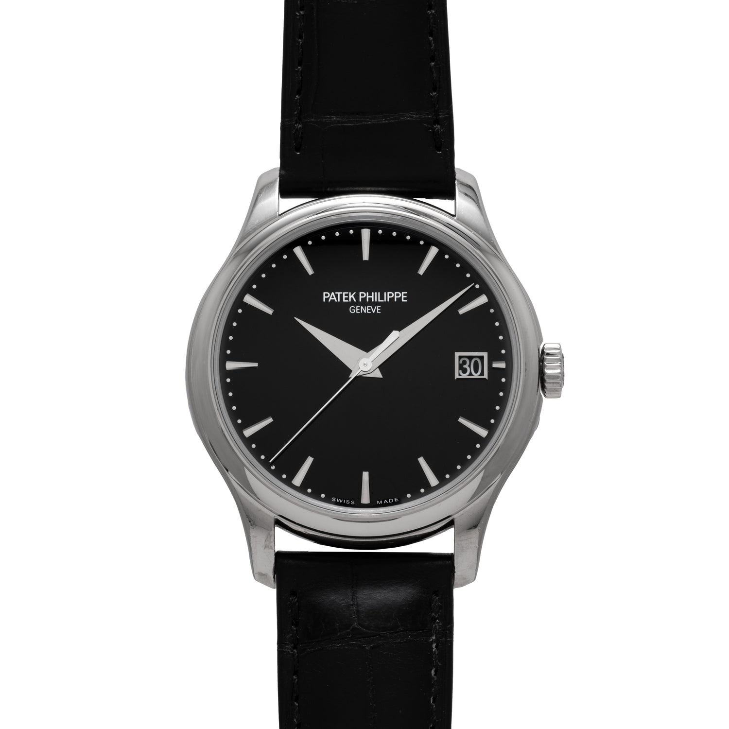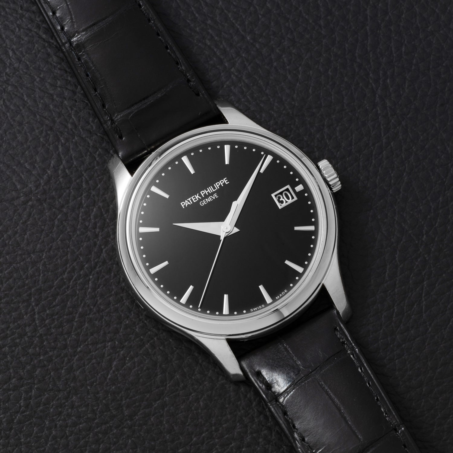 Outfitted to a signed black alligator leather strap with an 18K white gold pin buckle, this piece is an exceptional example of the traditional Calatrava design and the maison’s artisanship. It also happens to come with its inner box and Certificate of Origin.