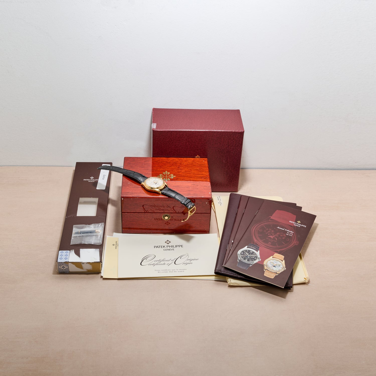 Powered by Patek Philippe's Calibre 315 S IRM QA LU self-winding movement, it comes complete with a signed black alligator leather strap, signed 18K yellow gold deployant buckle and Certificate of Origin dated 2006.