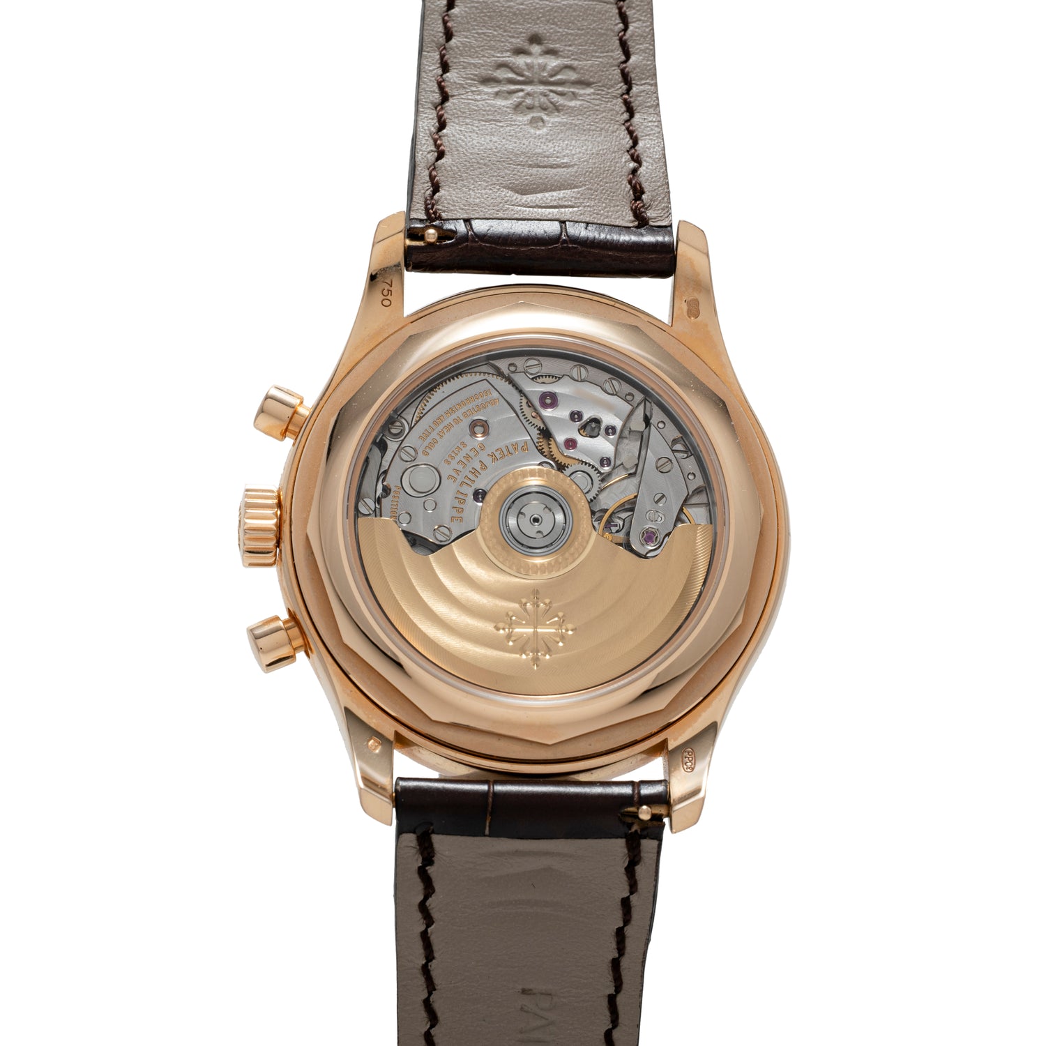 The back side features an exhibition caseback, providing a window to admire the self-winding Caliber CH 28-520 IRM and its 21k gold winding rotor. This stunner comes fitted to a signed brown alligator strap with a matching 18k signed deployant clasp. It is also accompanied by its inner and outer box set, leather folio, books, and a Certificate of Origin dated 2012.