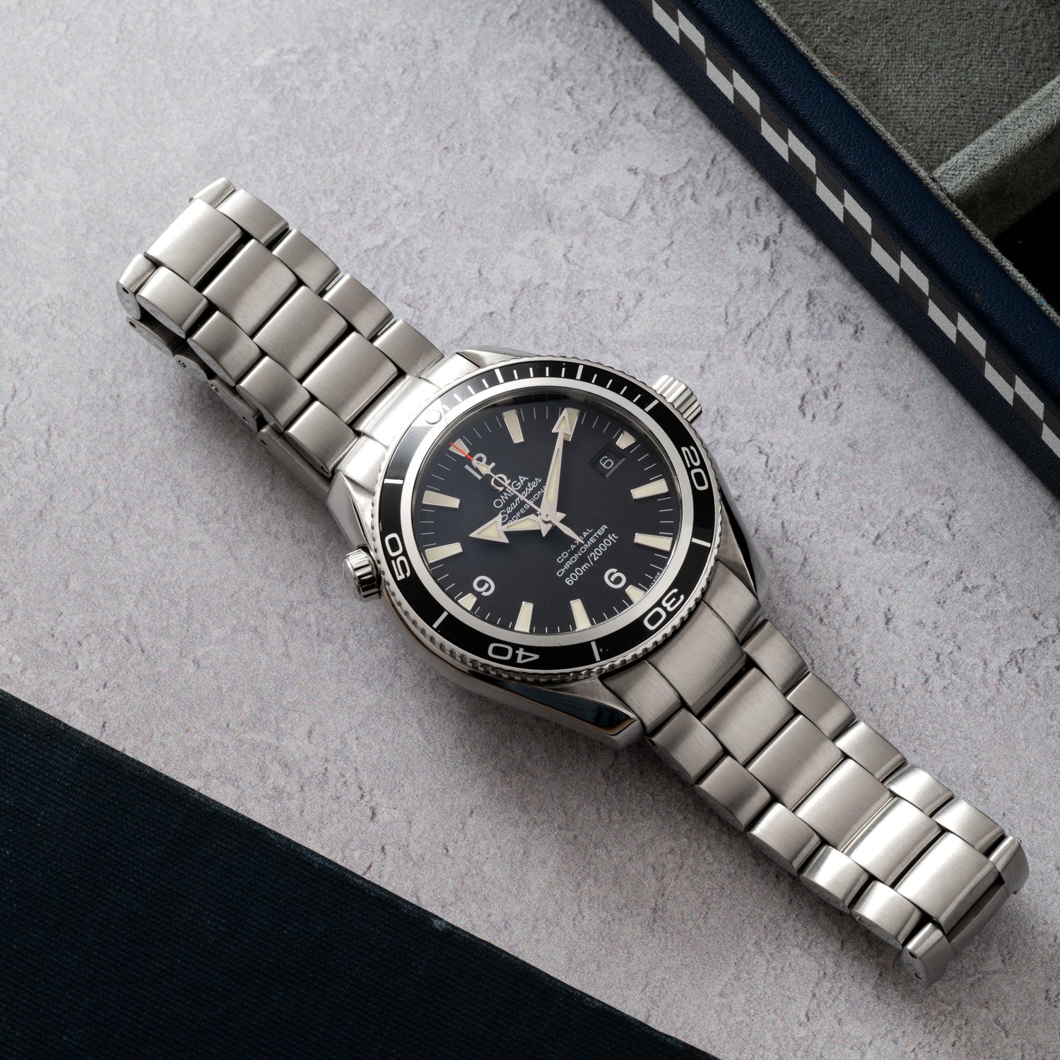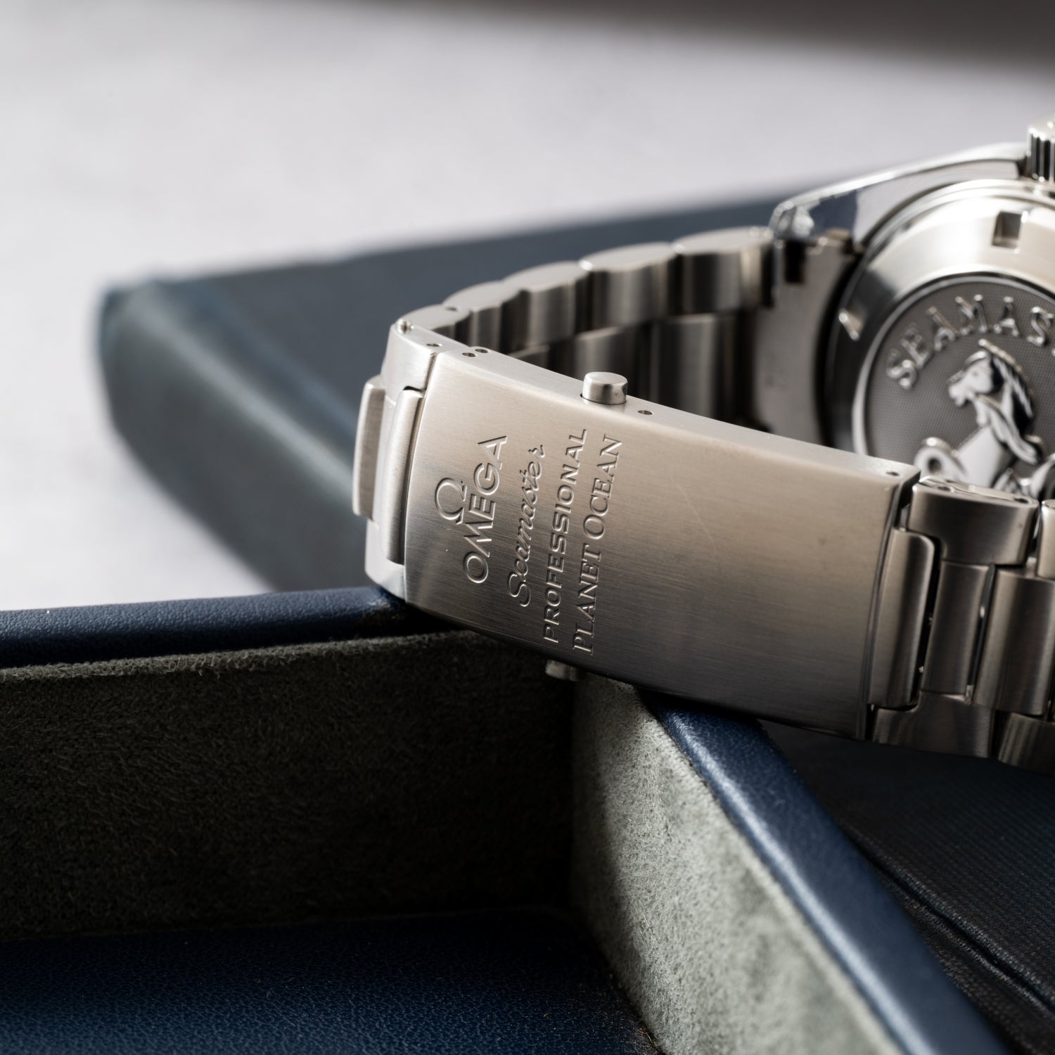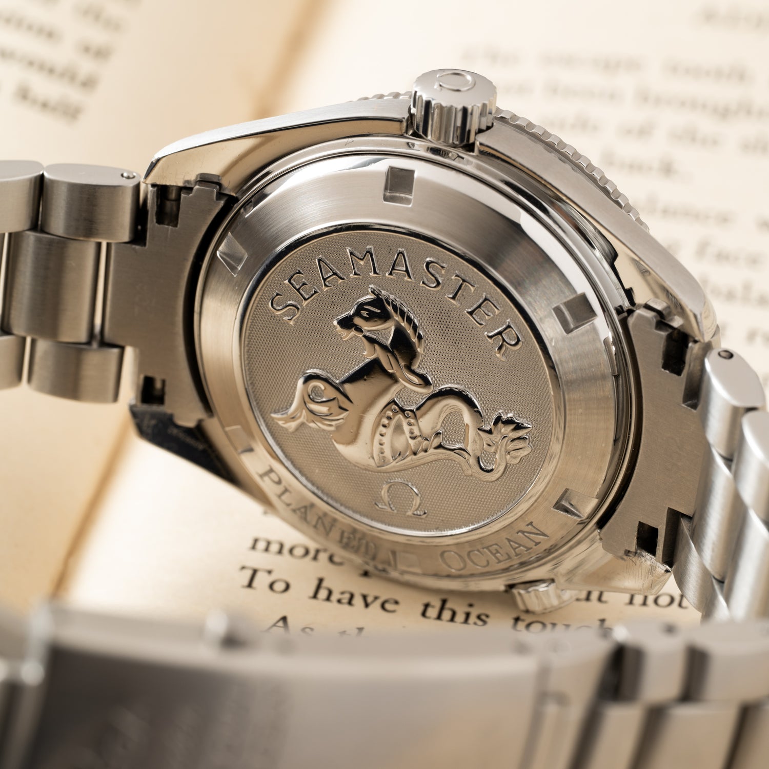 One of the latest additions to the broader Seamaster collection is the Planet Ocean. Introduced in 2005, these watches features a chunkier case, a fresh bracelet design, revised design language on the dial with a 'broad arrow' handset, and increased water resistance — no doubt to compete with that of the Rolex Sea-Dweller.