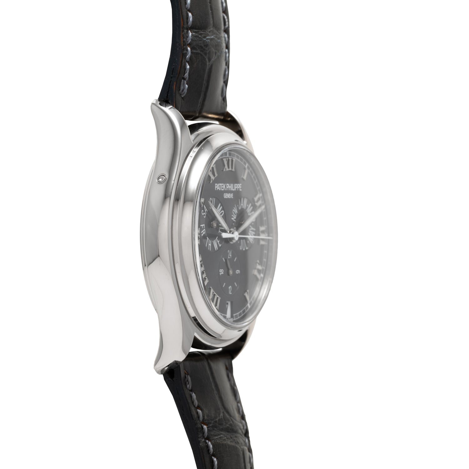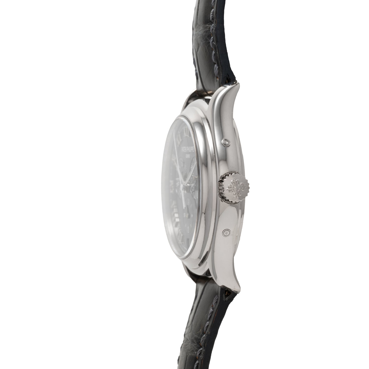 Paired to a signed, black leather strap with a signed, white gold deployant buckle, this scarce annual calendar represents the marriage of technical innovation with forward-looking design that nevertheless draws on nearly 200 years of aesthetic evolution. Significant and beautiful, it’s the perfect addition to a collection that respects Patek Philippe’s important place at the pinnacle of haute horlogerie.