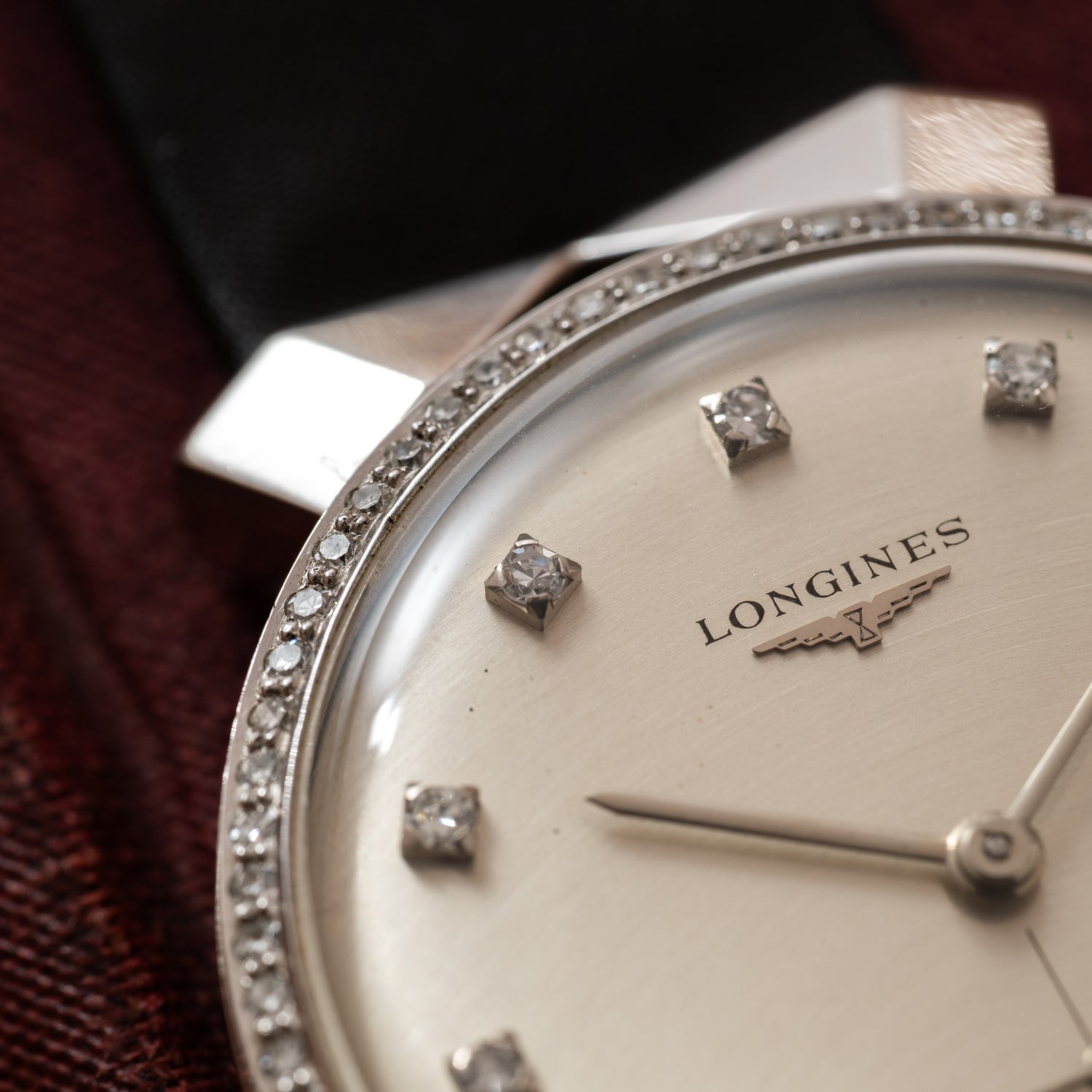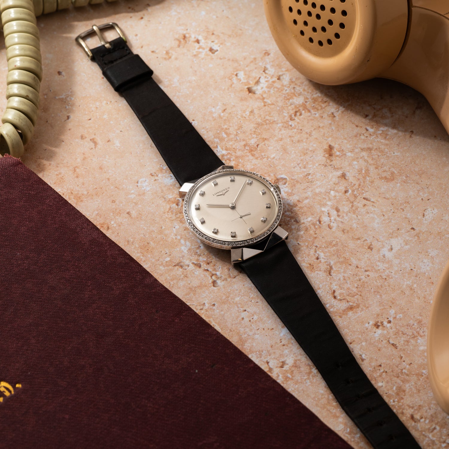 Take this vintage dress watch, for example: exhibiting all the vintage charm we search for in vintage watches, this 34mm piece flaunts a silver dial, applied diamond numerals and bezel, this watch's defining feature is undoubtedly its incredible lugs, attaching the strap with 50s- 60s charm. Another awesome feature on this piece is its accompanying box, which does wonders to add to the personality of the piece, and vintage aura.