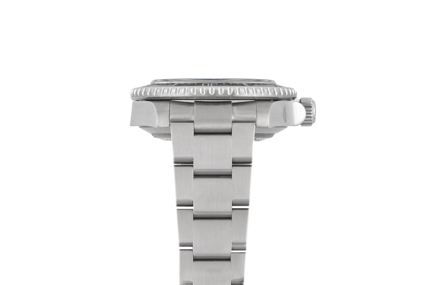 Additionally, it features a stainless steel Oyster case with a helium escape valve, a signed screw-down crown, a matte black dial with applied luminous indices and a matching handset, a unidirectional rotating timing bezel with a black ceramic insert, and a robust solid steel Oyster bracelet with both Rolex's fantastic Glidelock adjustment system, as well as a folding (and removable) dive extension.
