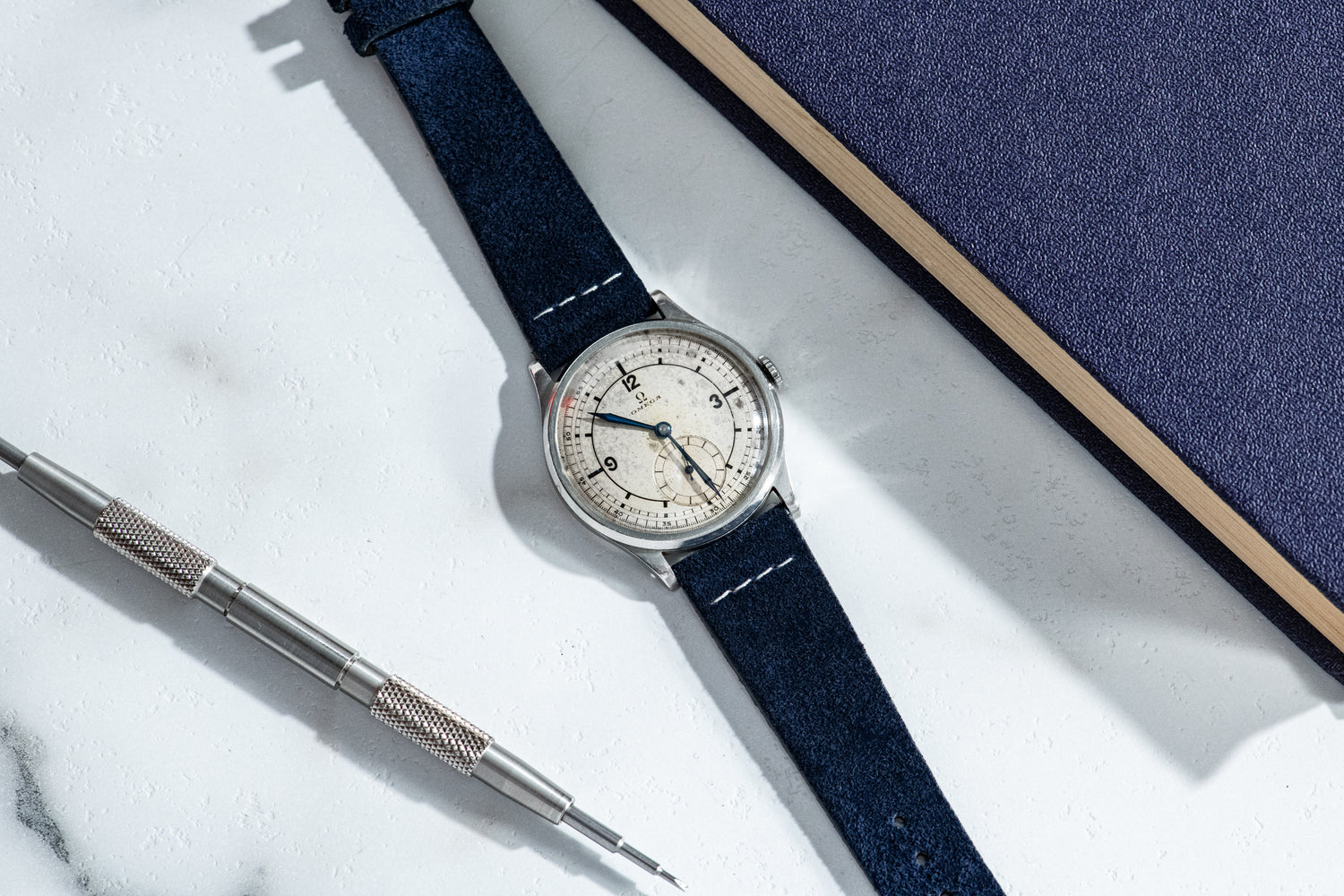 The Annapolis Blue Suede Strap is produced in a deep blue, paying tribute to the nation's Naval Academy. We've yet to find a style, material, or dial color that doesn't pair brilliantly with this beautiful strap!