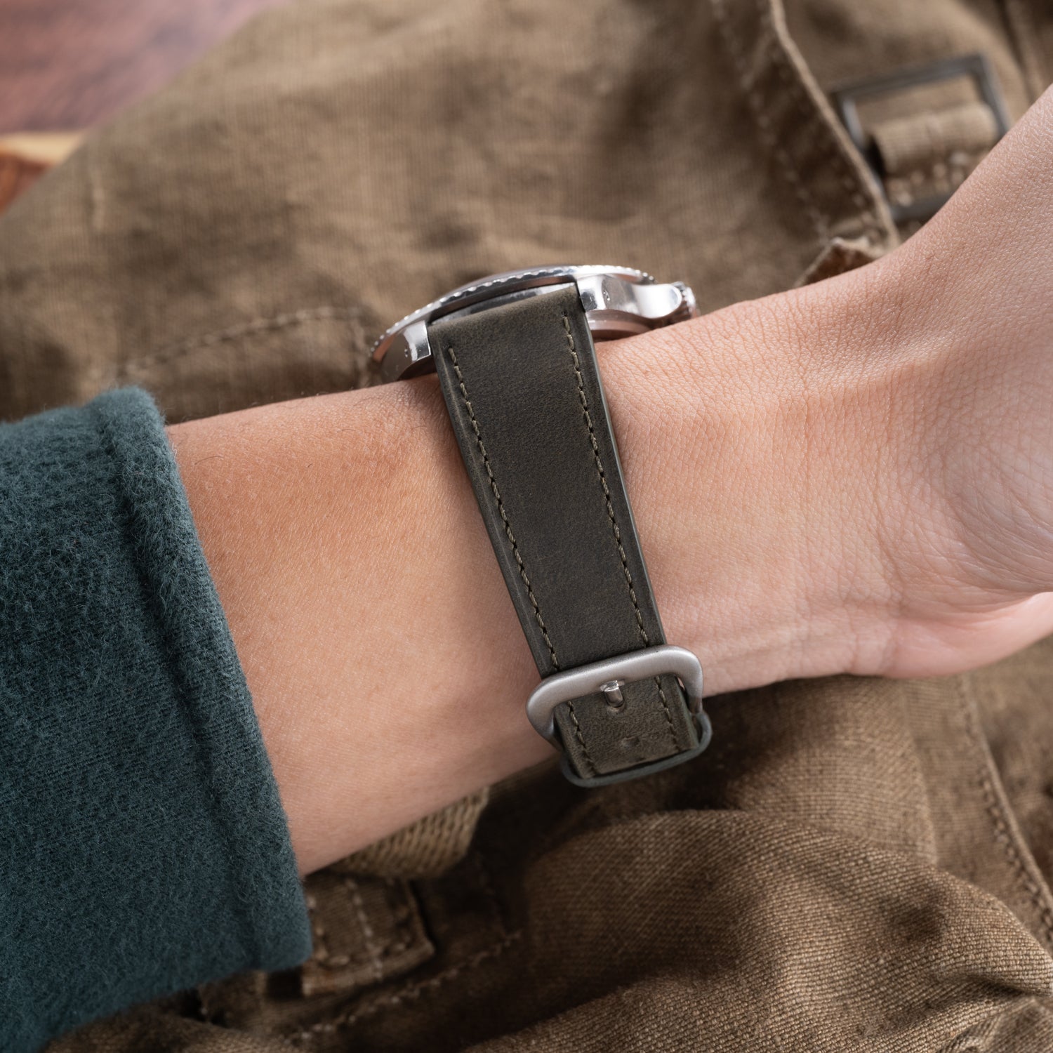 These elements combine to make for the perfect complement to a vintage racing chronograph, a high-flying pilot’s watch, or a simple field watch. However, these straps' subdued earth-tone hues also make them right at home on a larger-sized dress watch in steel or precious metal.