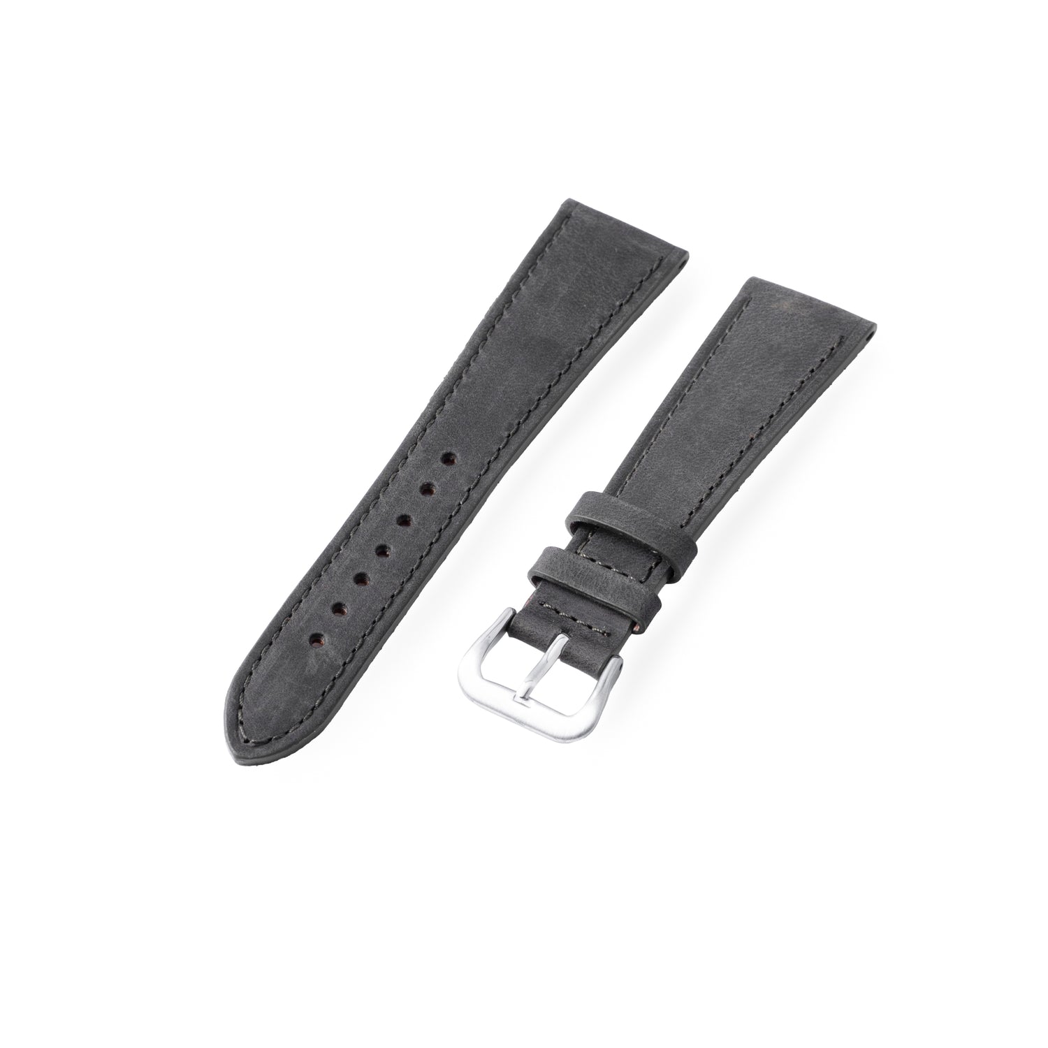 Analog:Shift Distressed Leather Straps are available in 20mm and 22mm widths with a 16mm taper, dual keepers, and an Analog:Shift-signed stainless steel pin buckle.Â
