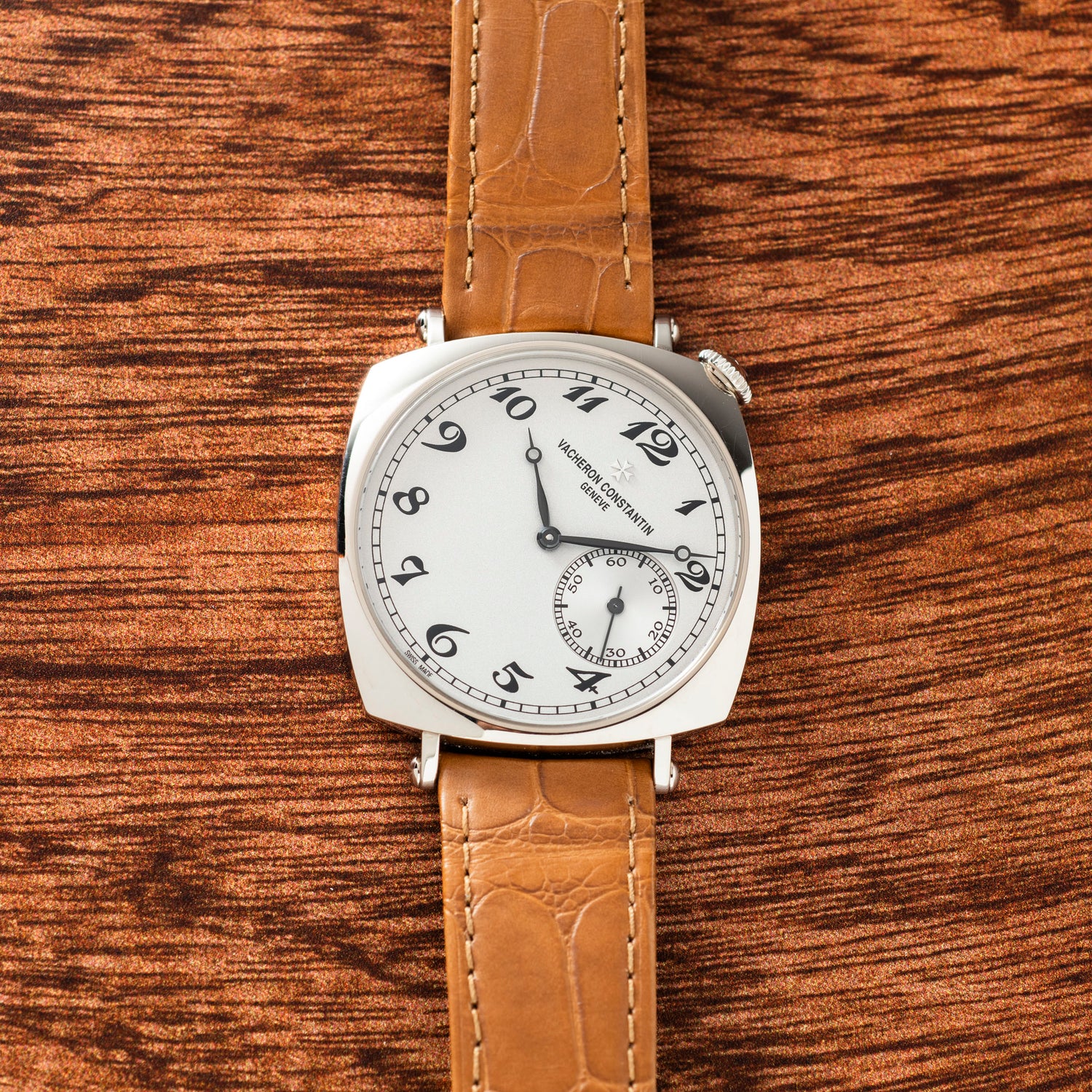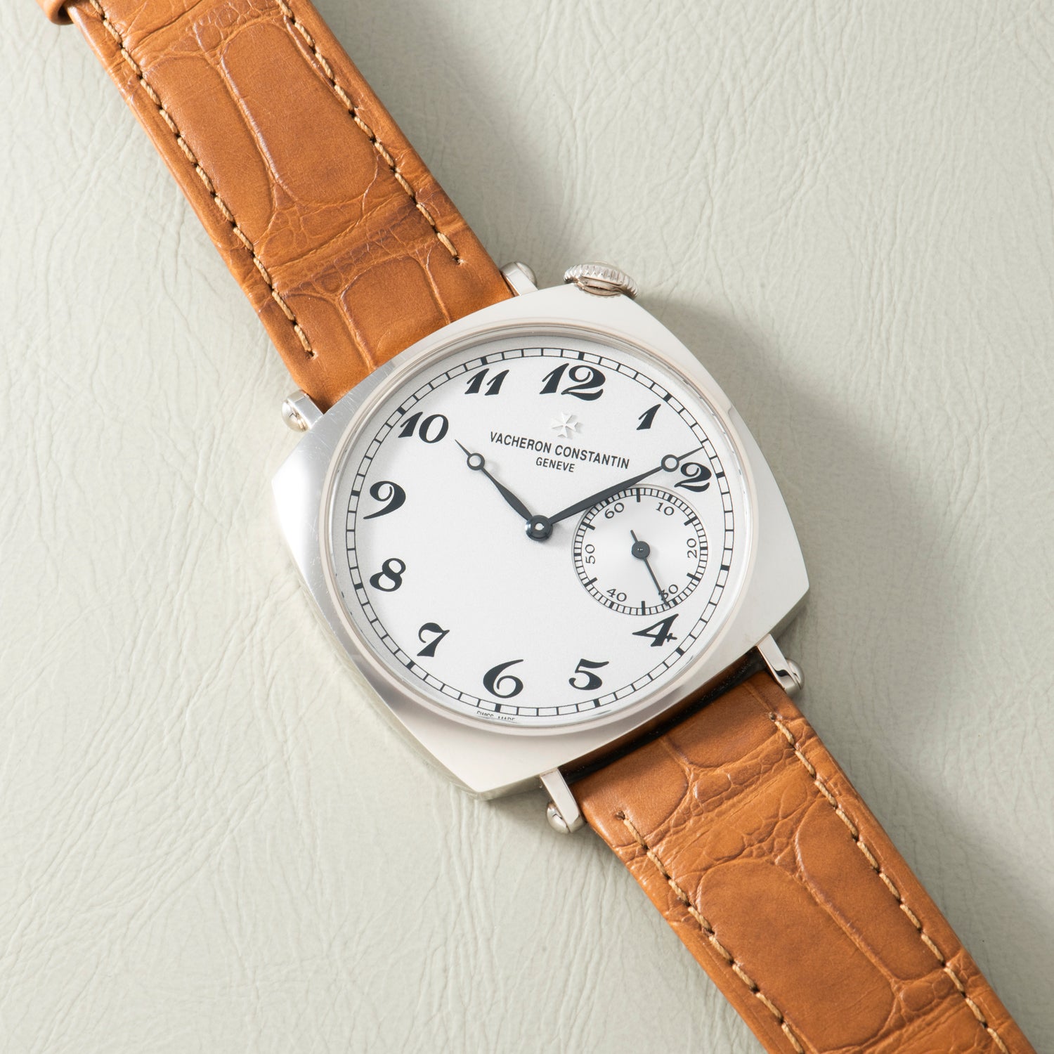 This particular Historiques Américaine 1921 features a 36.5mm 18k white gold case, a sapphire crystal, a Maltese cross signed crown, a silvered-brass dial with Breguet numerals and matching handset, and running seconds at 3 o’clock — a reminder of a design that likely made use of pocket watch movements. It’s paired to a brown alligator leather strap with a matching white gold Maltese cross signed pin buckle.