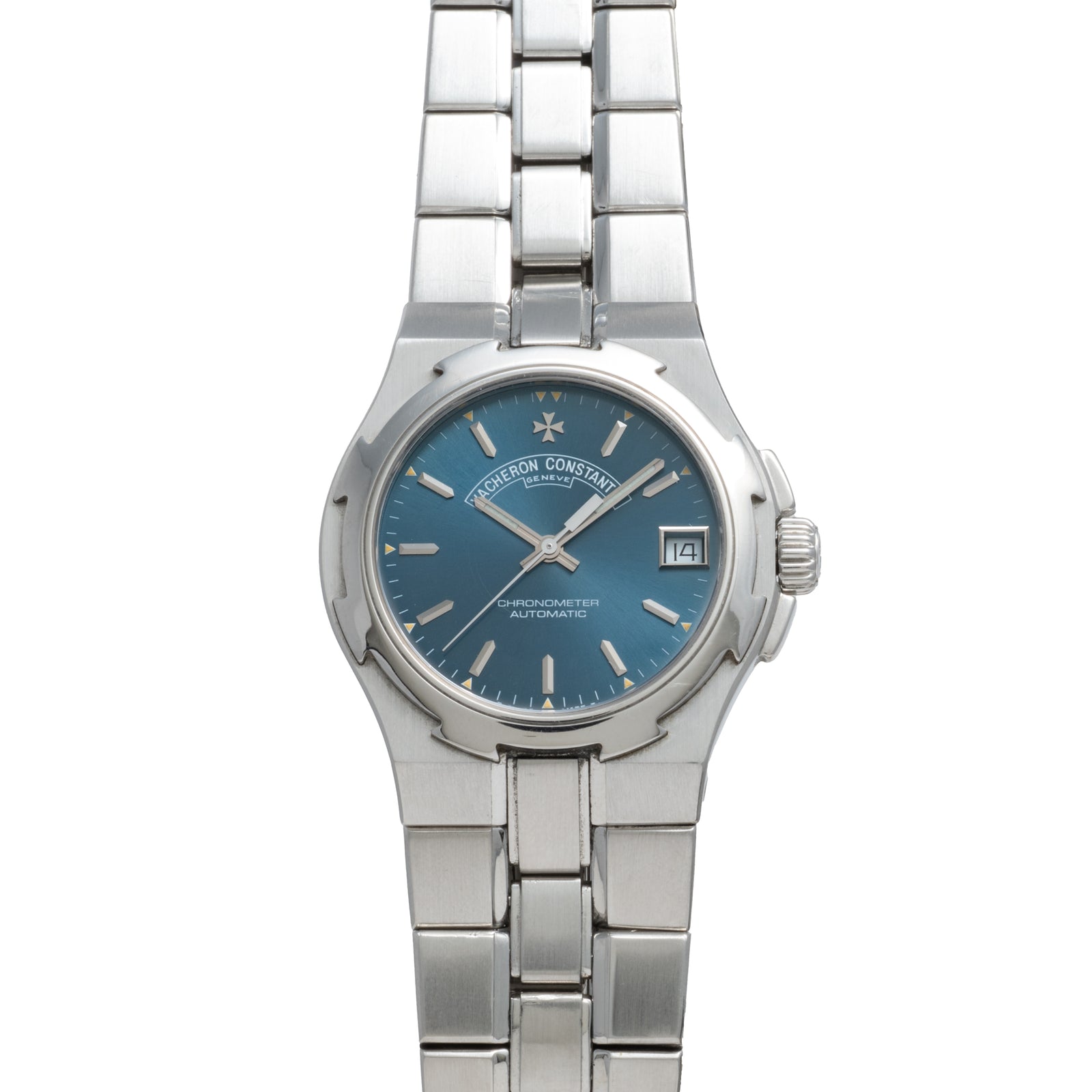 This example, a Reference 7900V, dates to 2019 and features the Overseas' distinguishable case silhouette and integrated bracelet design with its barrel shaped midcase, polished, stylized bezel that subtly highlights the brand’s signature ‘Maltese cross’ and a screw-down date adjusting located at 4 o'clock. The stainless steel case measures 41mm in width and with its flat sapphire crystal, comes in a shade under 13mm in thickness, making for a damn good wearing experience.
