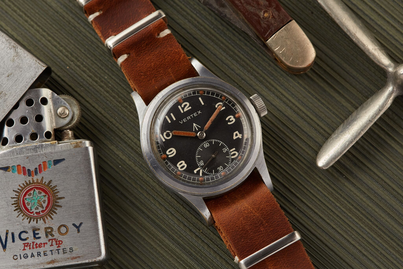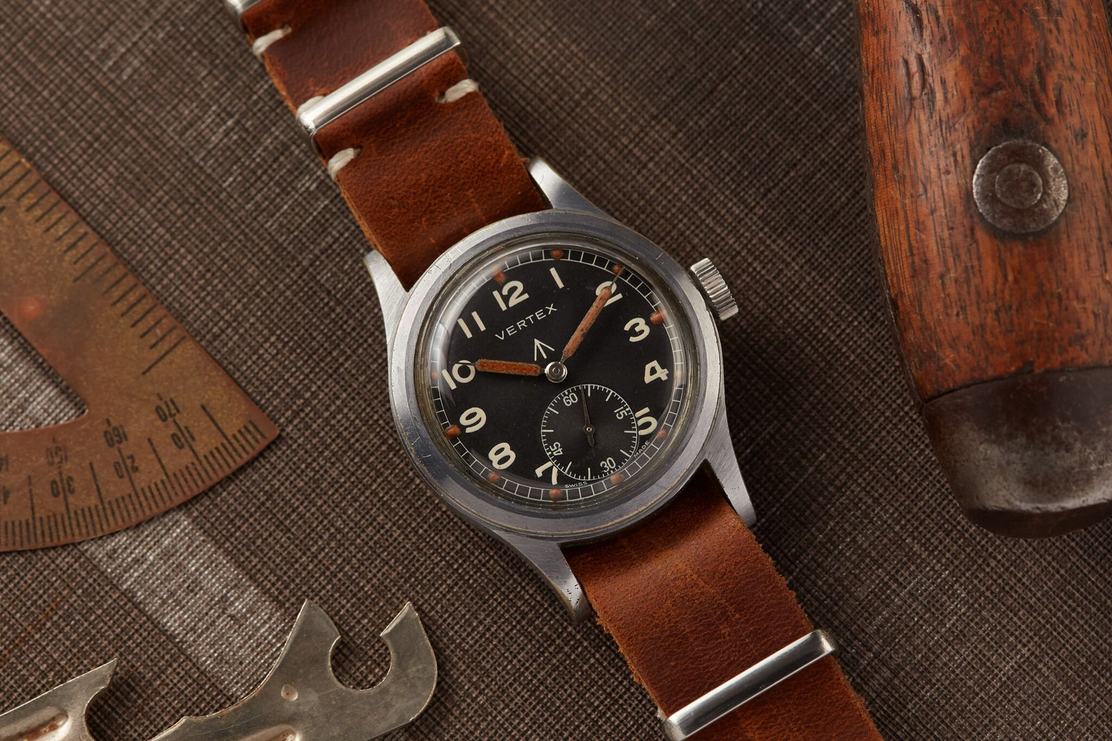 Though perhaps not as familiar a name to modern collectors as Omega, Longines, or JLC, Vertex is an old one, with a proud British history. In 1912, Claude Octavius Lyons set up a watch company which he named Dreadnought after the famous battleship. Shortly thereafter, under the name Vertex, the company had facilities in Switzerland and made watches in conjunction with Swiss companies like Movado and Revue Tommen.